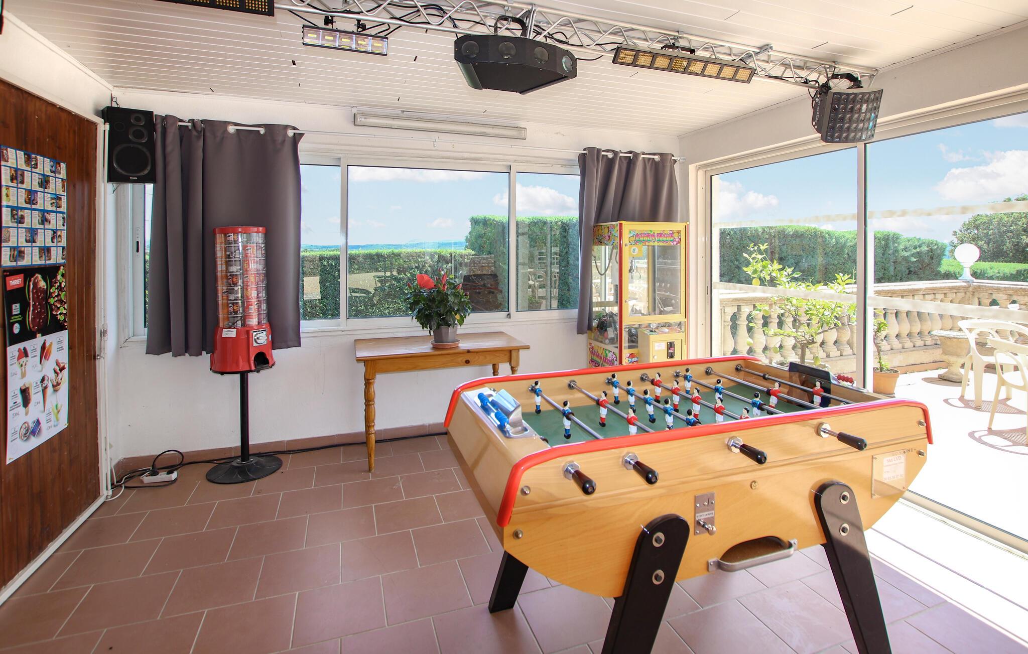 In der familienfreundlichen Ferienanlage finden Sie zahlreiche Aktivitäten, die die ganze Familie begeistern werden. Vergnügen Sie sich in dem großzügigen Pool und spielen Sie Billard, Tischtennis oder Boule, während sich die Kinder beim Tischfußball, auf dem Spielplatz, auf dem großen Fußballfeld oder unter dem Basketballkorb austoben und vielleicht neue Spielgefährten kennenlernen.