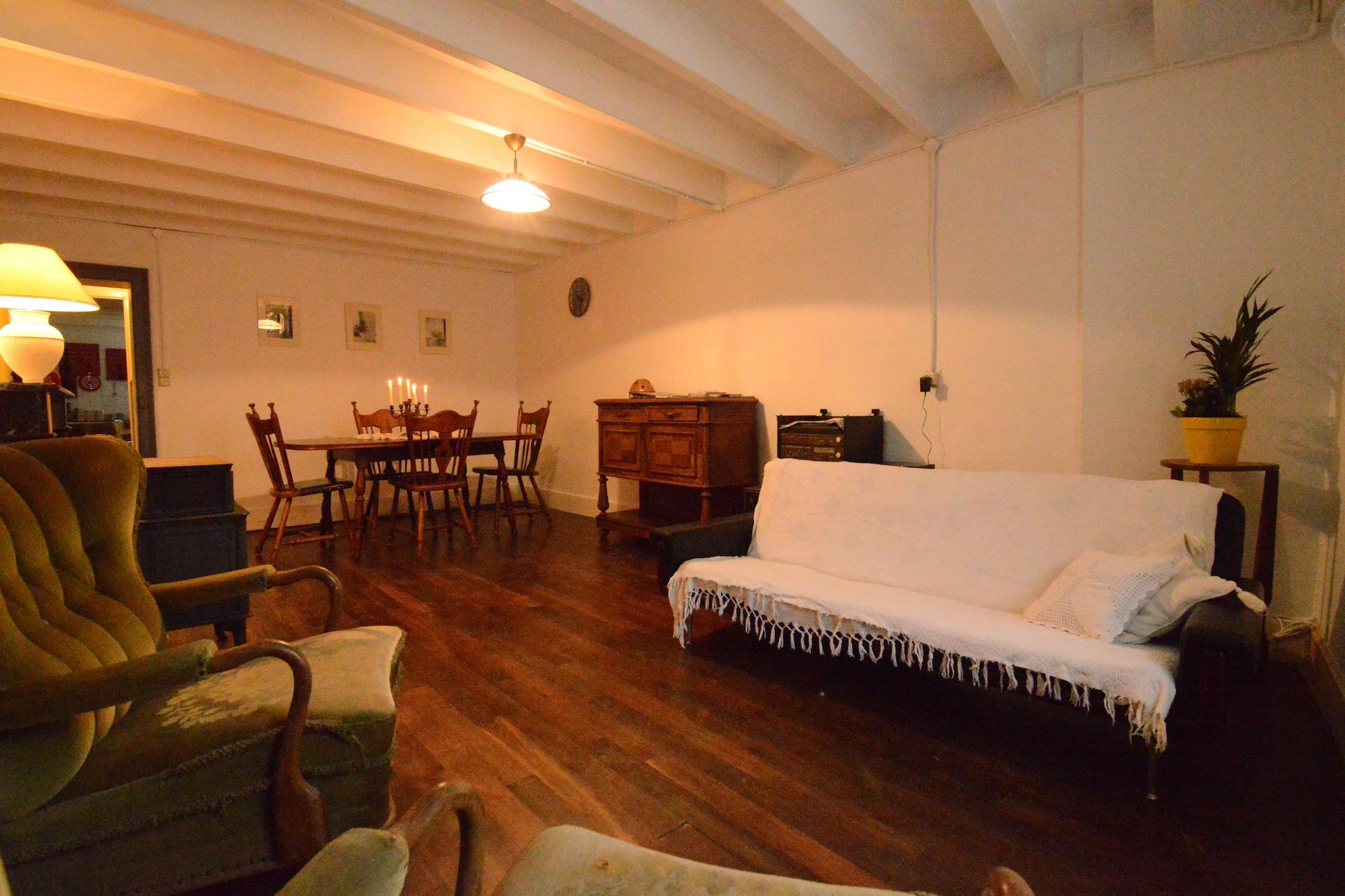 Ground floor: (hallway, Kitchen(hob, coffee machine, oven(grill-oven, mini), microwave, fridge-freezer), Living/diningroom(double sofa bed, CD player), bathroom(shower, washbasin, toilet), storage) On the 1st floor: (bedroom(double bed(140 x 200 cm)), bedroom(double bed(140 x 200 cm)), walk-through bedroom(3x single bed(90 x 200 cm))) recreation room, tumble dryer, washing machine, terrace, garden, garden furniture, BBQ, table tennis table, children's bed