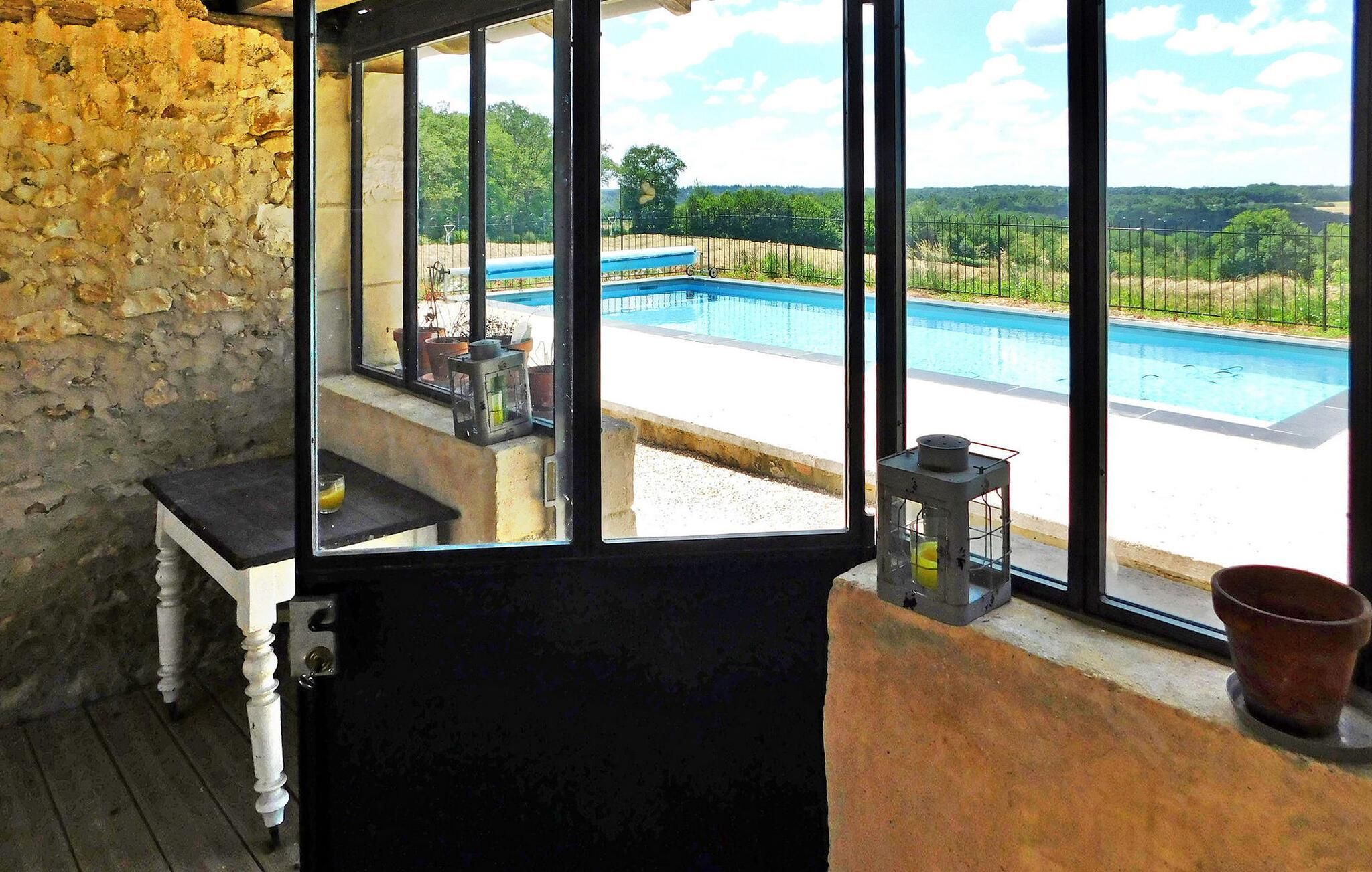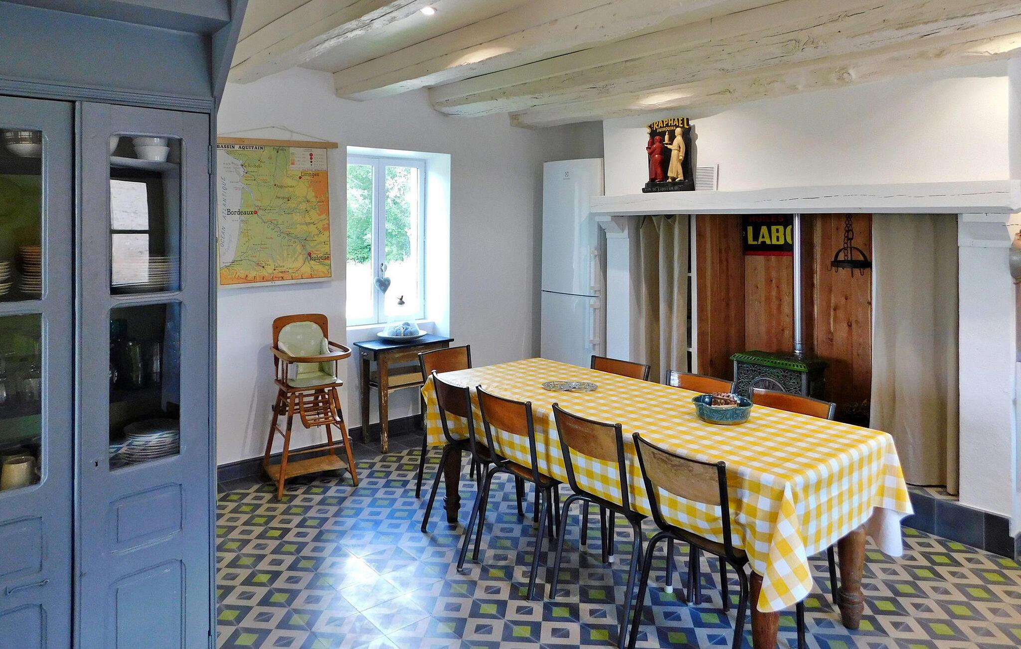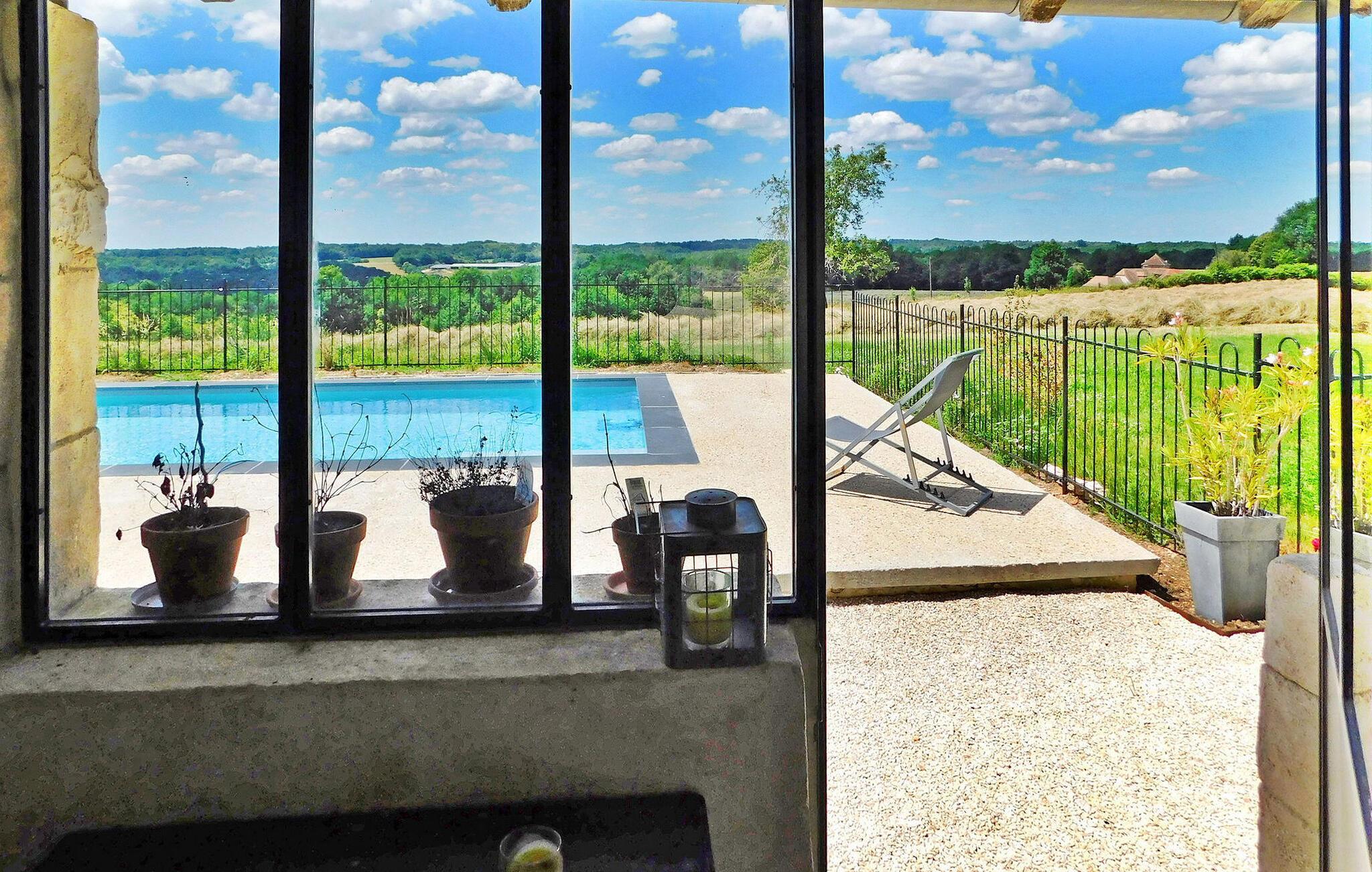 Eingebettet in die ruhige Landschaft der Dordogne bietet dieses charmante Steinhaus geschmackvolle Unterkünfte. Das Anwesen verfügt über einen geschlossenen beheizten Pool, der einen ruhigen Rückzugsort verspricht. Umgeben von einer ruhigen Umgebung liegen die nächsten Geschäfte im 7 km entfernten Thenon. Das Erdgeschoss des Hauses verfügt über eine gut ausgestattete Küche mit den wichtigsten Geräten, einen Essbereich und ein einladendes Wohnzimmer. Darüber hinaus verfügt es über ein Schlafzimmer mit direktem Zugang ins Freie. Im Obergeschoss finden Sie die restlichen Schlafzimmer, die so gestaltet sind, dass sie komfortable Schlafgelegenheiten bieten. Im Außenbereich können die Gäste einen Innenhof und eine Terrasse zum Essen im Freien oder einfach zum Entspannen genießen. Zu den Unterhaltungsmöglichkeiten gehören ein Spielezimmer mit Tischtennis und ein separates Spielzimmer mit Tischfußball. Das Highlight des Anwesens ist der private, umzäunte, beheizte Pool, der sich auf der Rückseite des Hauses befindet und zur Sicherheit mit einem Tauchalarm und einer Innentreppe gesichert ist. Gönnen Sie sich die Ruhe auf dem Land, entspannen Sie sich in diesem charmanten Steinhaus und genießen Sie den malerischen Charme der Dordogne. Die Ferienwohnung befindet sich in einem Weiler mit mehreren unbewohnten Nebengebäuden. Genießen Sie die ruhige Lage auf dem Land. Das kleine Dorf Bars (1,3 km) verfügt über ein Restaurant, die nächsten Geschäfte finden Sie im Dorf Thenon (7 km). Ein weiterer Weiler liegt 500 m entfernt.