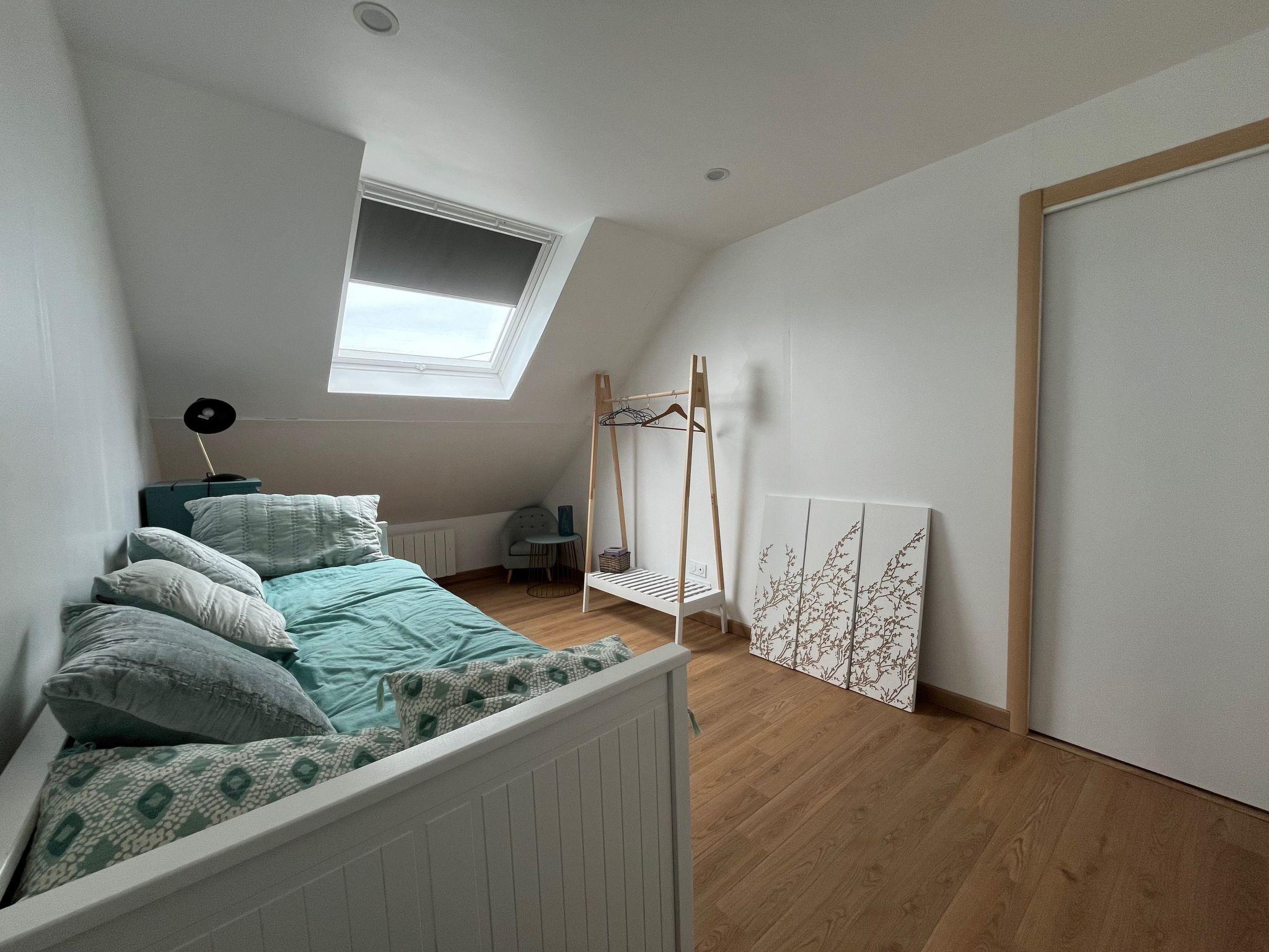 A bedroom with a trundle bed (simply pull out the drawer to make a 2nd bed).