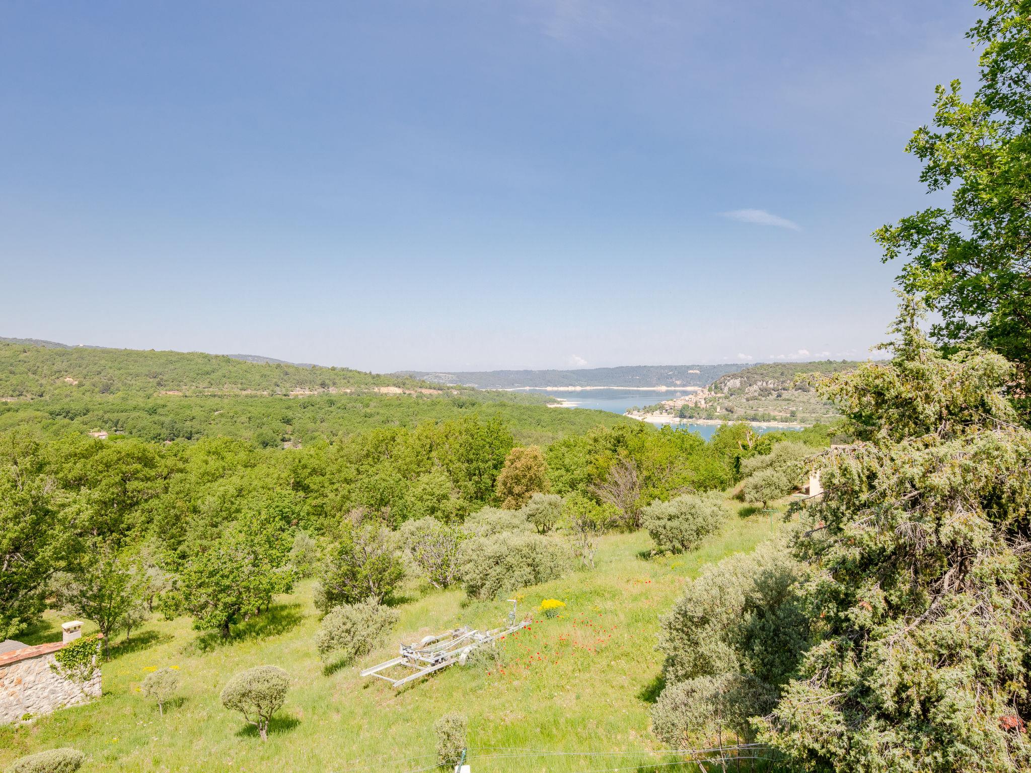 Rustic country house "Campagne les Oliviers", surrounded by trees and fields. 4 apartments in the property. In the hamlet Font Castellan 2.5 km from the centre of Bauduen, 17 km from the centre of Aups, in a secluded, sunny, elevated position on a slope, 200 m from the lake. For shared use: large, well-kept terraced garden, 3'000 m2 (not fenced) with plants and trees, meadow. In the house: washing machine (for shared use). Steep motor access to the house (ramp). Parking on the premises. Shop 2 km, bus stop 14 km, swimming bay 800 m, lake Lac de Sainte Croix 200 m. Walking paths from the house 50 m. Nearby attractions: Moustier 30 km. Hiking paths: Gorges du Verdon 20 km. Please note: Additional accommodations can be booked.