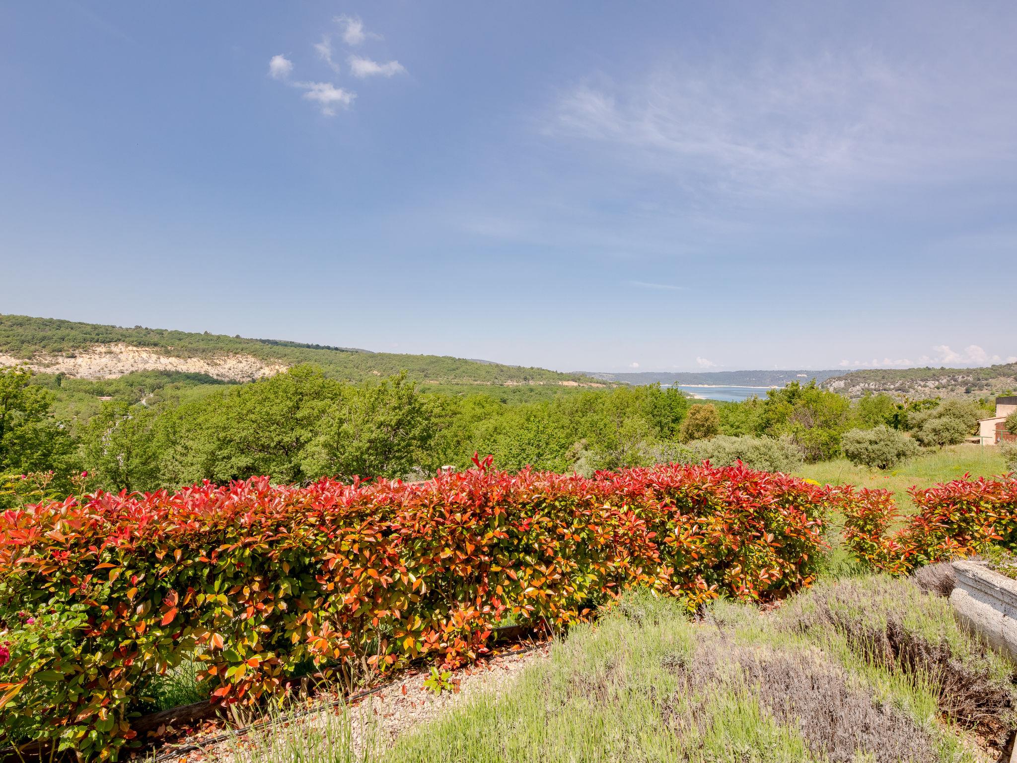 Rustic country house "Campagne les Oliviers", surrounded by trees and fields. 4 apartments in the property. In the hamlet Font Castellan 2.5 km from the centre of Bauduen, 17 km from the centre of Aups, in a secluded, sunny, elevated position on a slope, 200 m from the lake. For shared use: large, well-kept terraced garden, 3'000 m2 (not fenced) with plants and trees, meadow. In the house: washing machine (for shared use). Steep motor access to the house (ramp). Parking on the premises. Shop 2 km, bus stop 14 km, swimming bay 800 m, lake Lac de Sainte Croix 200 m. Walking paths from the house 50 m. Nearby attractions: Moustier 30 km. Hiking paths: Gorges du Verdon 20 km. Please note: Additional accommodations can be booked.