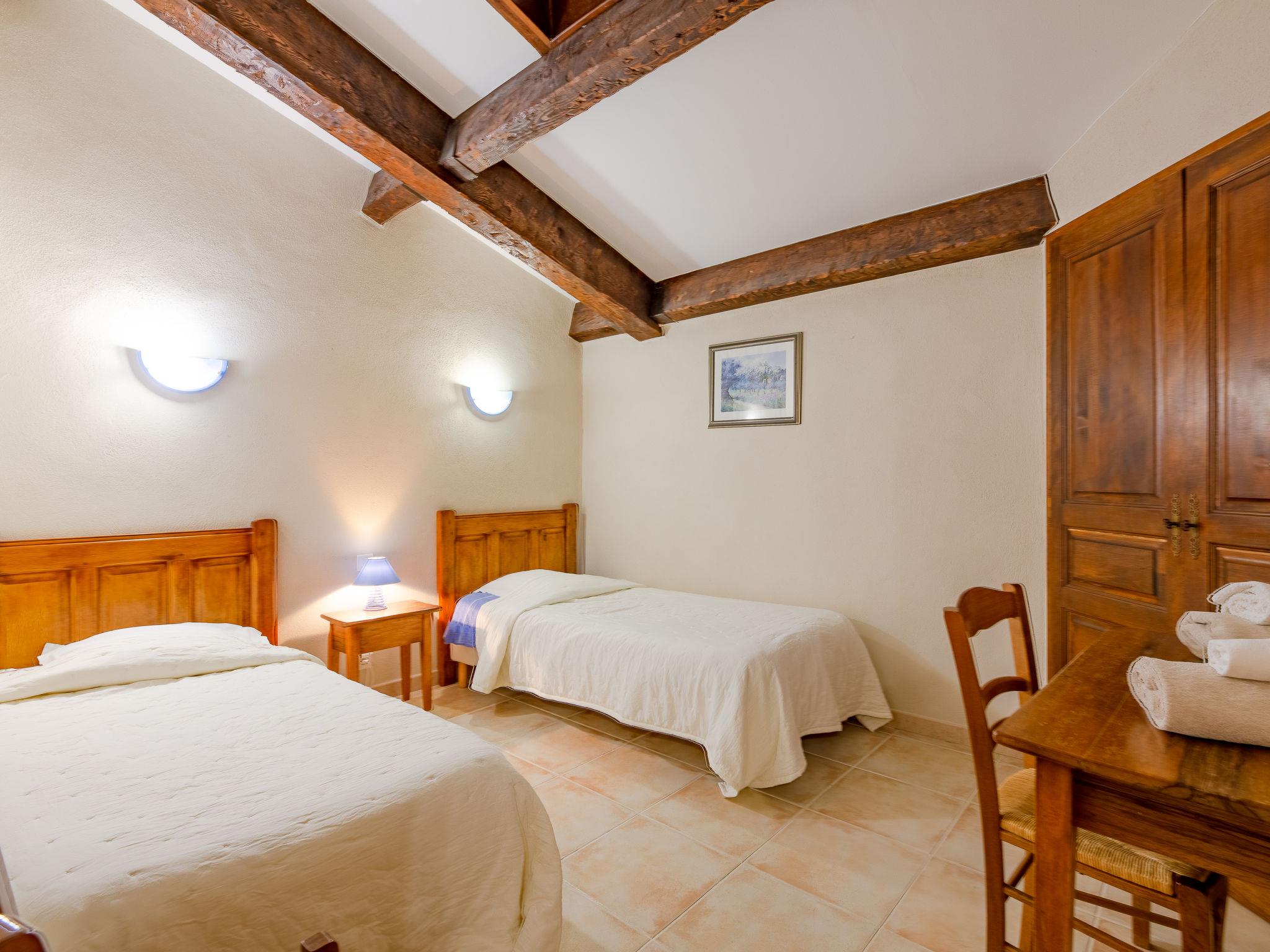 Large, rustic large working farm "Domaine de Majastre", surrounded by trees, meadows and fields. 14 apartments in the residence. Property composed of main house and outbuilding 8 km from the centre of Bauduen, 8 km from the centre of Aups, 8 km from the lake. For shared use: natural state property 60 ha with plants and trees, meadow, pond, swimming pool (15 x 7 m, seasonal availability: 01.May. - 15.Oct.). Poolhouse, boccia, terrace, garden furniture. In the complex: breakfast room, WiFi, washing machine (for shared use). Bread roll service on request. Parking on the premises. Shop 8 km, bus stop 8.5 km. On the estate animal husbandry. Please note: the owner lives on the same property. The owner has a dog. Additional accommodations can be booked.