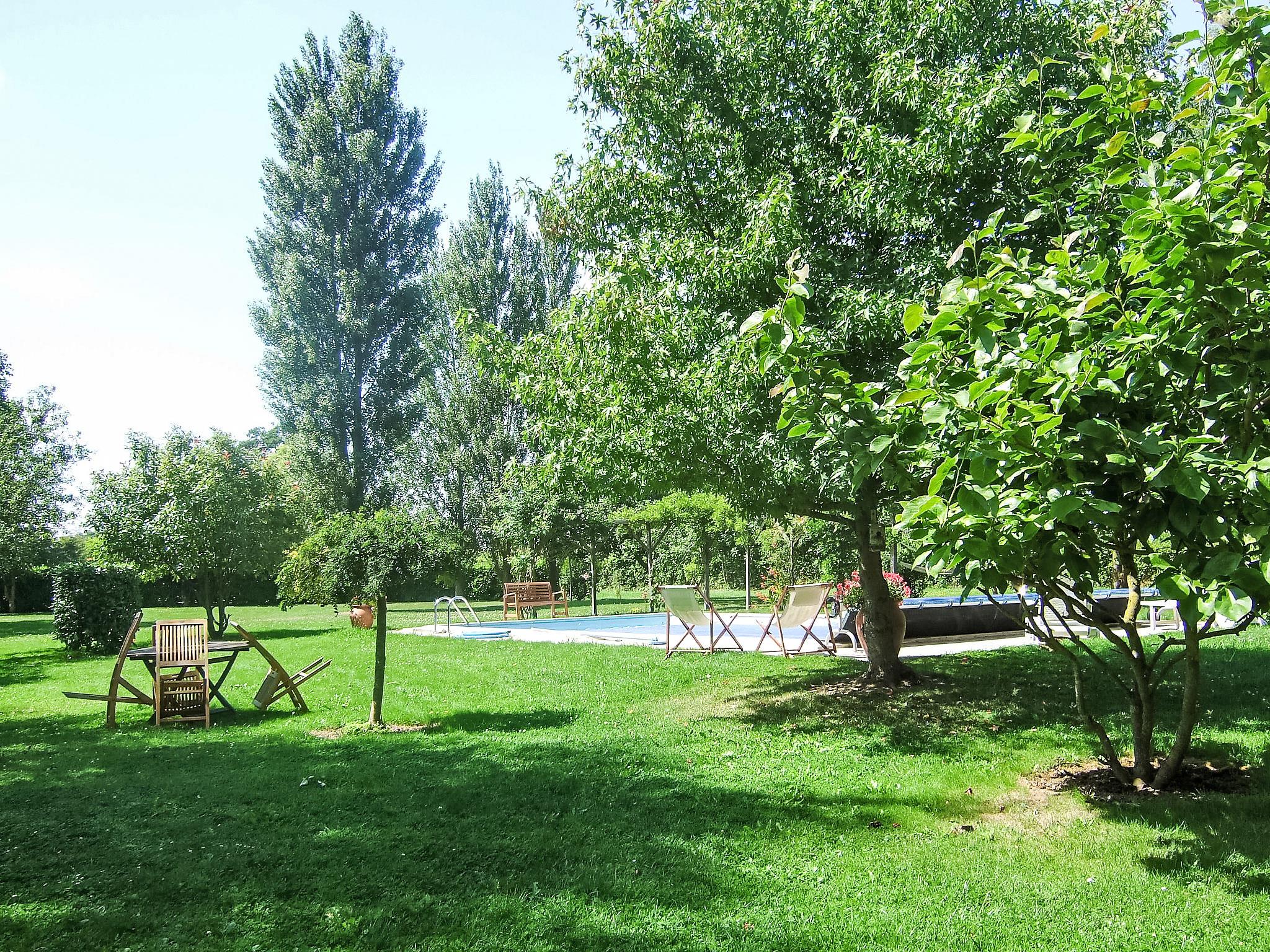 Tour en Bessin 6 km from Bayeux: This old farmhouse was used during the Second World War for the Resistance and was renovated into a holiday home comfortable, historical single-family house "Les Londes", surrounded by trees and fields. Outside the resort, 7 km from the centre of Bayaux, in a quiet position, 8 km from the sea, in the countryside. Private: large, well-kept garden 1 ha (fenced) with lawn and flowers, meadow, courtyard, swimming pool (11 x 5 m, depth 100 - 215 cm, seasonal availability: 28.May. - 05.Sep.) with alarm system. Children's playground (swing). In the house: table tennis, billiard table, playroom, table football, central heating system. Parking on the premises. Shop 6 km, grocery 6 km, supermarket 6 km, restaurant 6 km, bar 6 km, bakery 6 km, bus stop "Maison" 6.3 km, sandy beach "Omaha Beach" 17 km. Golf course (36 hole) 13 km, tennis 6 km, riding stable 10 km. Nearby attractions: Arromanches 17 km, Omaha Beach 17 km, Plages du débarquement, Caen, Bayeux aventure (Cussy) 2 km. Please note: car recommended. Suitable for families, baby equipment on request (included). Object suitable for 10 adults + 2 children. Fishing [permit required], on request. Animals in the neighbourhood. (Pool can be heated on request, extra on availability). Numerous farm animals can be discovered in surrounding area.