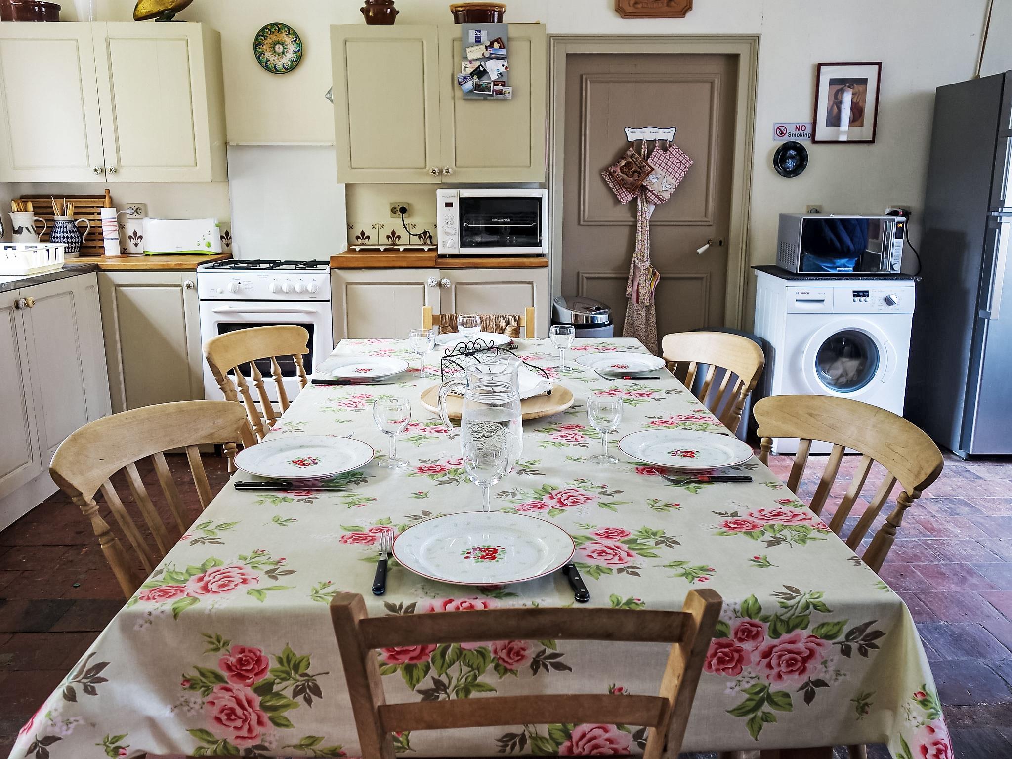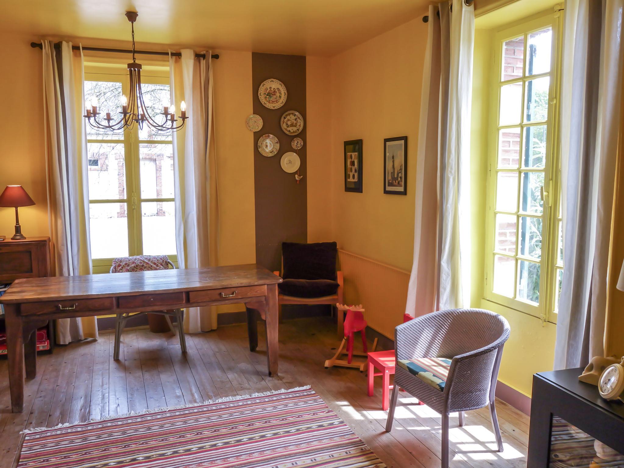 7-room house 318 m2 on 2 levels. Object suitable for 10 adults + 2 children. Comfortable and beautiful furnishings: living/dining room with open-hearth fireplace and TV (flat screen), CD-player and DVD. Exit to the garden. Open large office 30 m2. 1 small room with 1 bed (80 cm), 1 double bed (140 cm). Large kitchen (4 hot plates, oven, dishwasher, microwave, electric coffee machine) with dining table. Shower/WC. Oil heating. Upper floor: 1 large room with 1 french bed (180 cm, length 208 cm). 1 large room with 1 bed (90 cm), 1 french bed (2 x 90 cm, length 200 cm). 1 children's room with 2 beds (80 cm, length 190 cm). 1 room with 1 french bed (180 cm). Bath/WC, double hand-basin. Oil heating (extra). Parquet floors. Comfortable furnishings in the country house style. Garden, lawn. Terrace furniture, barbecue, deck chairs (6). View of the garden. Facilities: washing machine, children's high chair, baby cot for up to 2 year olds. Internet (WiFi, free). Parking (fenced 4 cars). Please note: suitable for families apartment courtyard side. TV only FR. linen and towels are provided but have to be request before arrival to the keyholder. 1rst floor : large game room with pool table, dart board, table tennis and a small football table.
