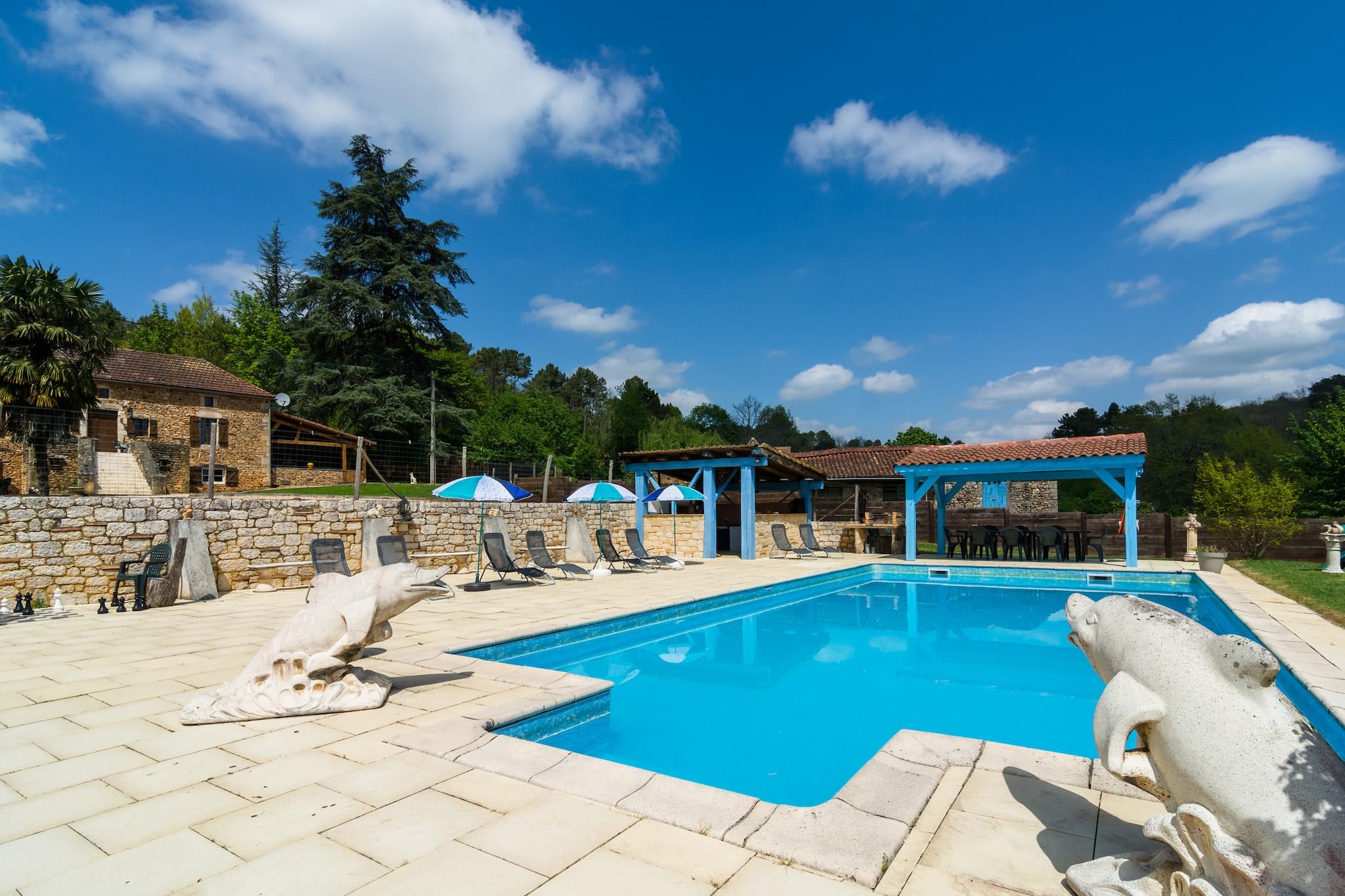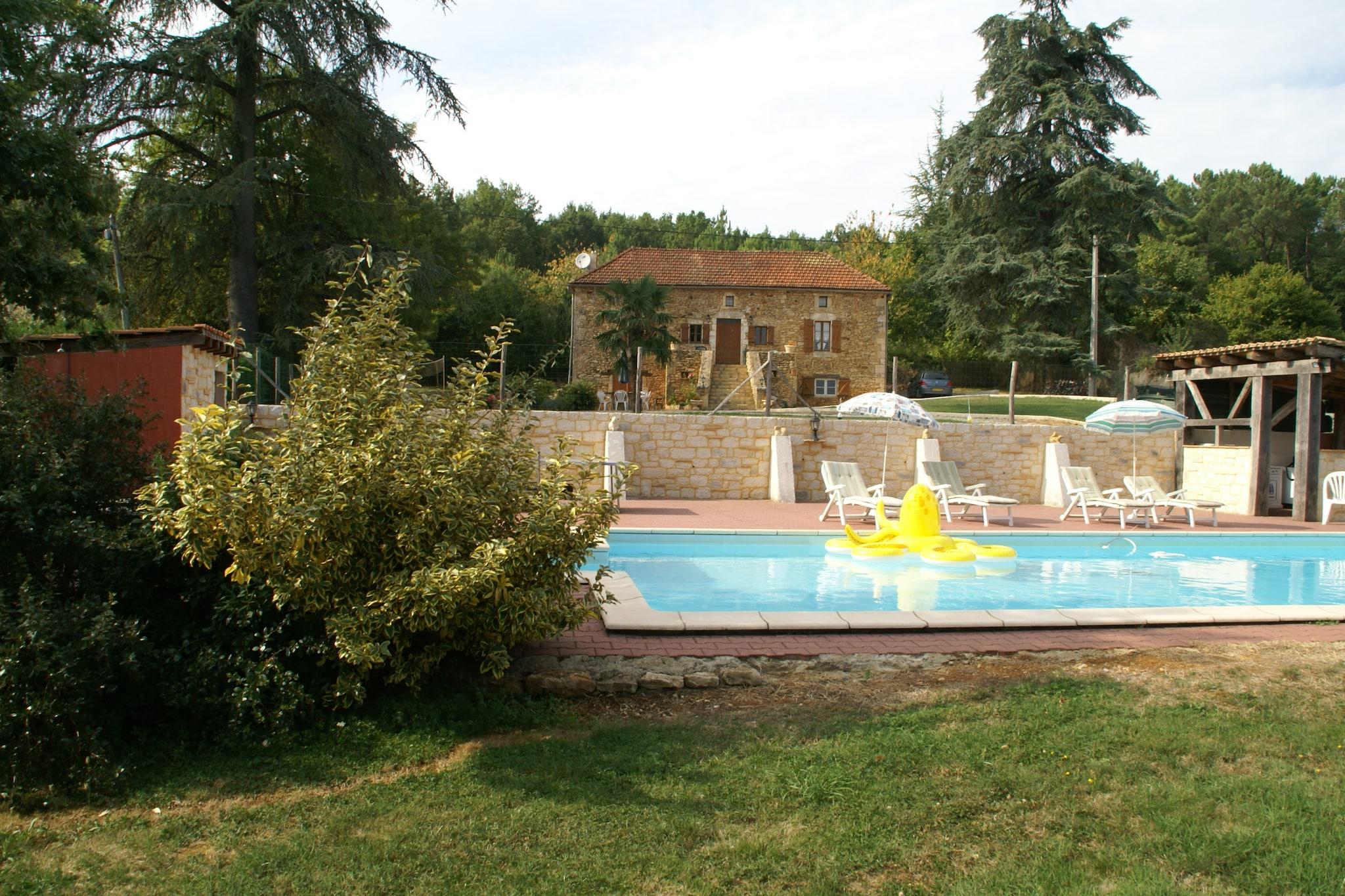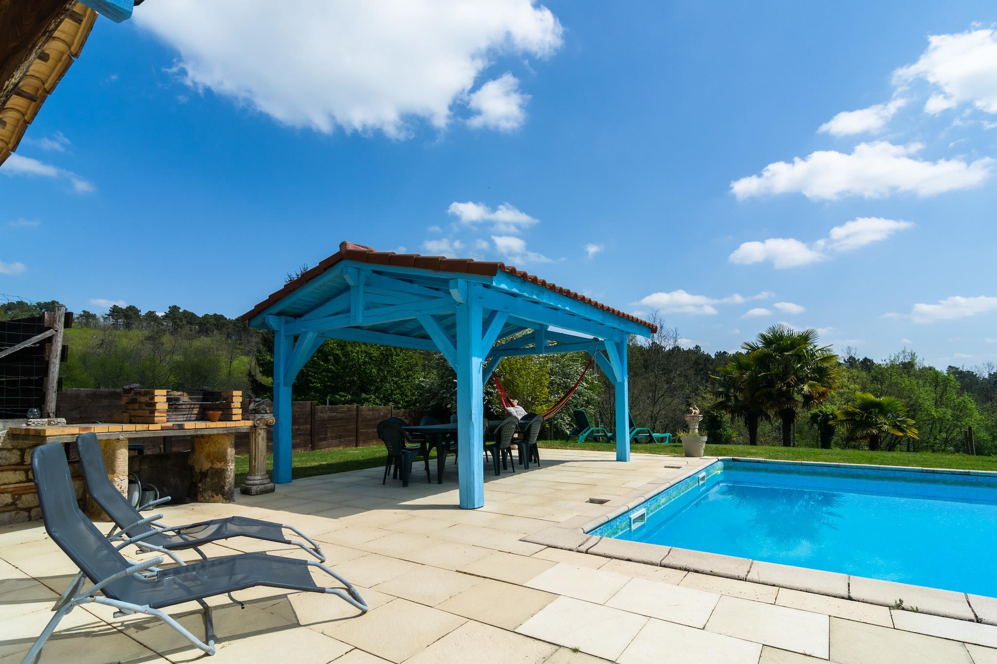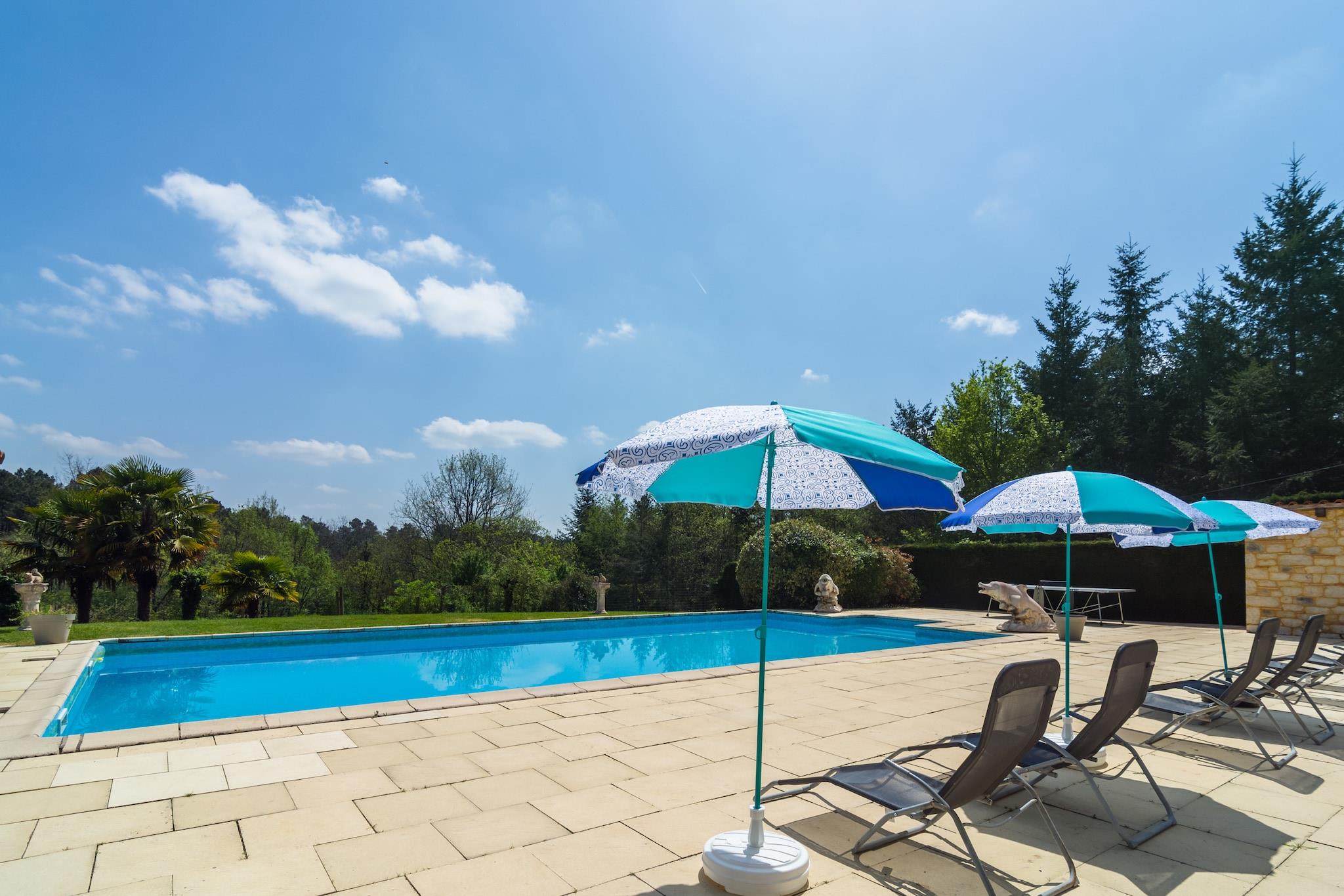 Set in tranquil surroundings with panoramic forested hill views, this spacious 5-bedroom holiday home in Blanquefort-sur-Briolance comfortably hosts up to 12 guests. Whether you're traveling with family or friends, this villa offers the perfect blend of relaxation, adventure, and cultural exploration. Enjoy sunny days by the private swimming pool and sun terrace, complete with a stone grill for outdoor dining. The home features a fireplace (wood provided), a fitness room, washing machine, and freezer. Six bicycles (including one for children) are available for scenic rides through the hilly, wooded landscape—ideal for walkers and cyclists alike. Nearby, discover the Château de Bonaguil (14 km), the bastide town of Monpazier (13 km), and the underground dungeons of Belvès (23 km). Monflanquin (33 km) and the water park in Le Bugue (41 km) offer fun for all ages. Follow Napoleon’s footsteps at his former mansion just 8 km away. Indulge in the region’s famed walnuts, truffles, and foie gras, and unwind in a home that celebrates nature, history, and gastronomy.