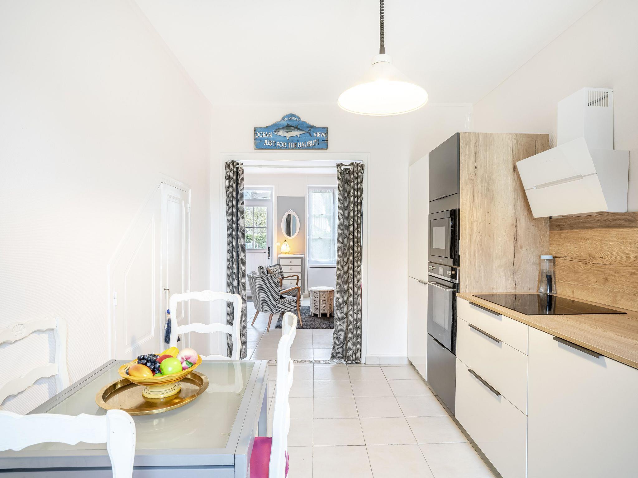 Terraced house "Les Étourneaux". In the resort 200 m from the centre of Cabourg, in a quiet position, 950 m from the sea, 950 m from the beach. Private: garden 60 m2 (fenced). Garden furniture, public parking on the road. Shop, grocery, supermarket 200 m, restaurant, bar 400 m, bakery 200 m, café 400 m, bus stop "Hôtel de Ville" 210 m, sandy beach 950 m, thermal baths "Thalassothérapie" 1.8 km. Sports harbour 1.8 km, golf course (9 hole) 1.9 km, minigolf 950 m.