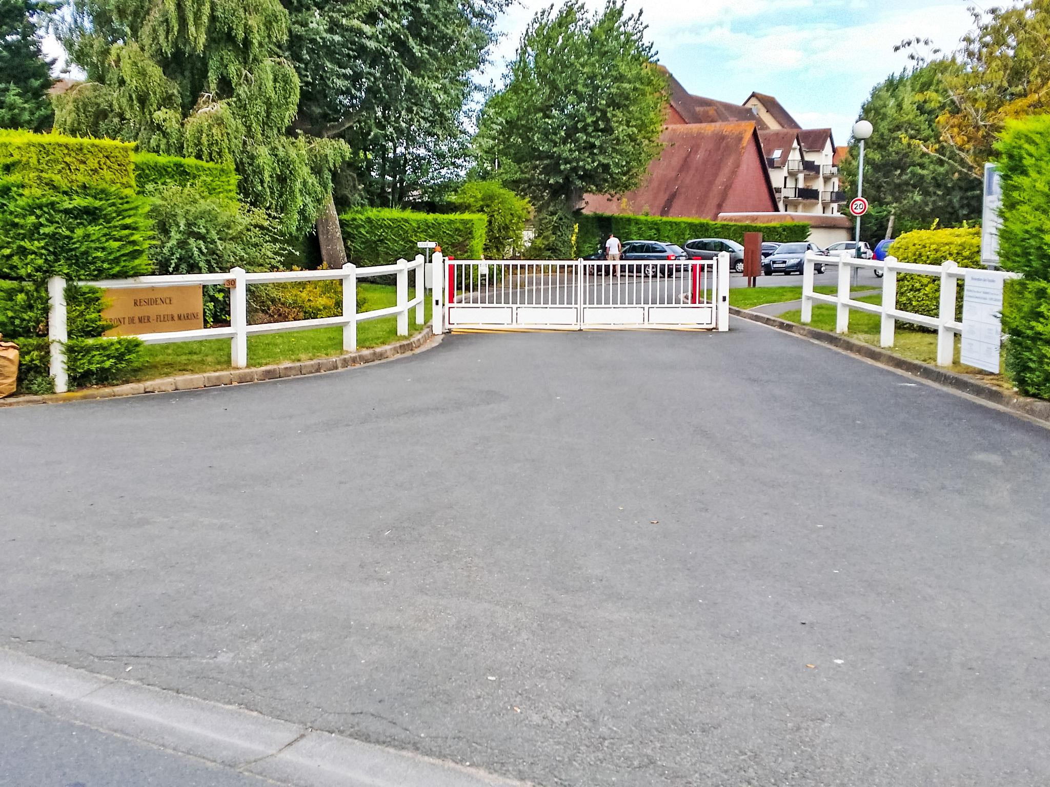 Residence "Fleur Marine". In the resort 1 km from the centre of Cabourg, 300 m from the sea, 300 m from the beach, direct access to the beach. For shared use: boccia, parking (limited number of spaces). Shop 1 km, grocery 1 km, supermarket 900 m, restaurant 1 km, bar 1 km, bicycle rental 550 m, bus stop "Plage" 450 m, sandy beach 300 m, thermal baths "Thalazur" 500 m. Sports harbour 3 km, golf course (9 hole) 1.2 km, tennis 700 m, minigolf 2.3 km, sports centre 500 m. Nearby attractions: Deauville 26 km, Honfleur 48 km, Caen 25 km. Please note: no lift. The photograph shows a typical example. Composed of 2-storey terraced houses and 3-storey buildings in Norman style.