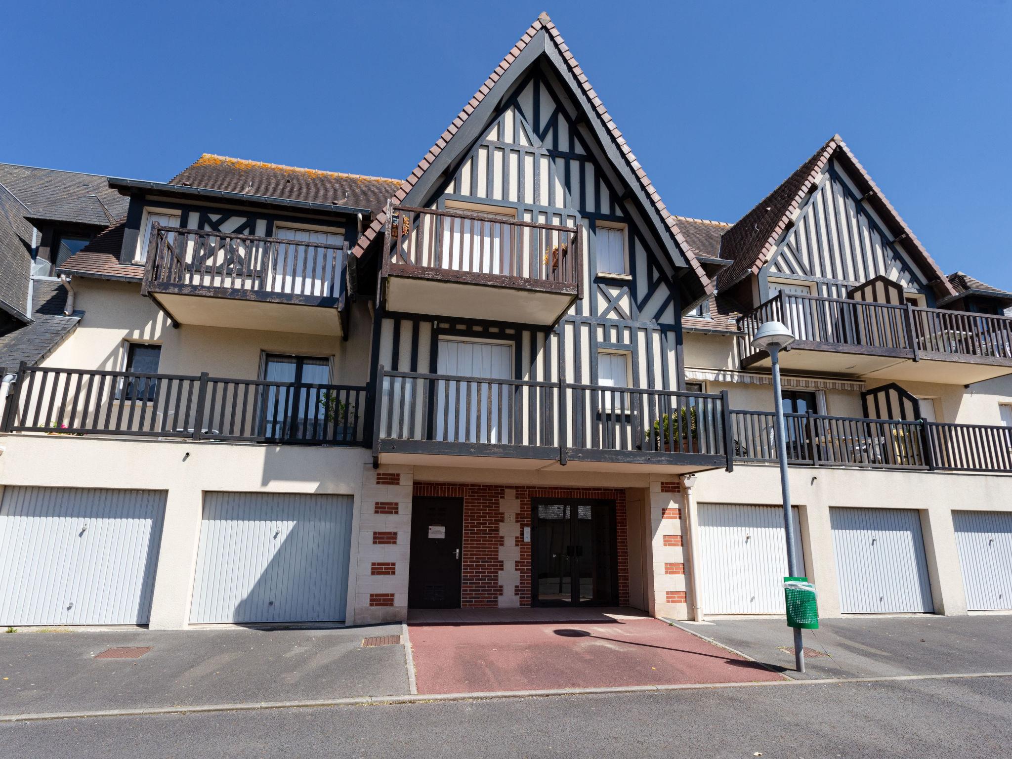Residence "Fleur Marine". In the resort 1 km from the centre of Cabourg, 300 m from the sea, 300 m from the beach, direct access to the beach. For shared use: boccia, parking (limited number of spaces). Shop 1 km, grocery 1 km, supermarket 900 m, restaurant 1 km, bar 1 km, bicycle rental 550 m, bus stop "Plage" 450 m, sandy beach 300 m, thermal baths "Thalazur" 500 m. Sports harbour 3 km, golf course (9 hole) 1.2 km, tennis 700 m, minigolf 2.3 km, sports centre 500 m. Nearby attractions: Deauville 26 km, Honfleur 48 km, Caen 25 km. Please note: no lift. The photograph shows a typical example. Composed of 2-storey terraced houses and 3-storey buildings in Norman style.