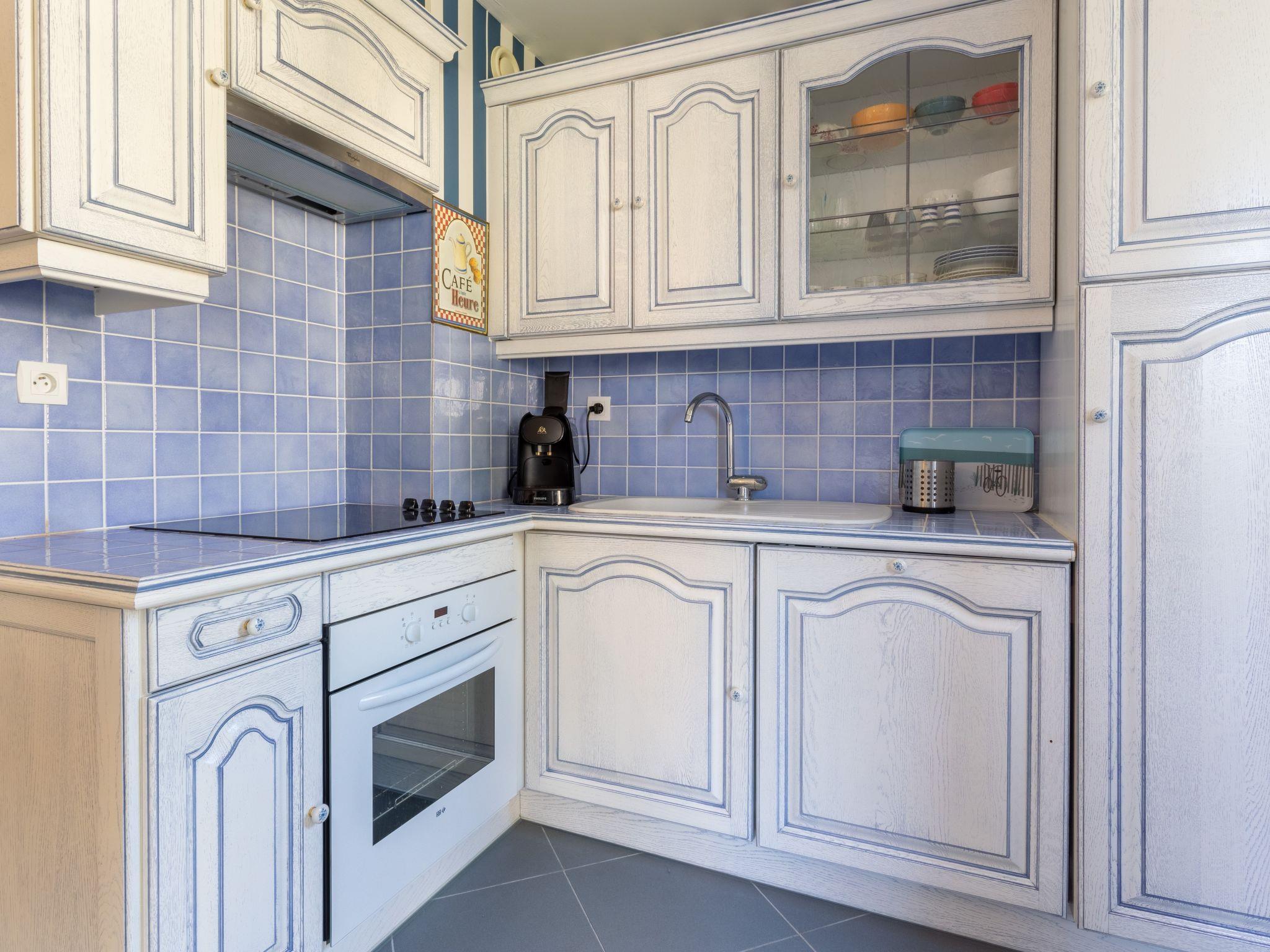 2-room apartment 34 m2 on 1st floor, south-east facing position. Living/dining room with 1 double sofabed (140 cm, length 190 cm), TV (flat screen). Exit to the terrace. 1 room with 1 french bed (160 cm, length 200 cm). Kitchenette (oven, dishwasher, 4 ceramic glass hob hotplates, toaster, kettle, microwave, electric coffee machine, Capsules for coffee machine (Senseo) extra). Shower, sep. WC. Electric heating. Terrace 18 m2. Facilities: iron. Internet (WiFi, free). Parking space n 38 (roofed). Please note: non-smokers only, parking space for small car only. Maximum 1 pet/ dog allowed. Smoke alarm. FR66287
