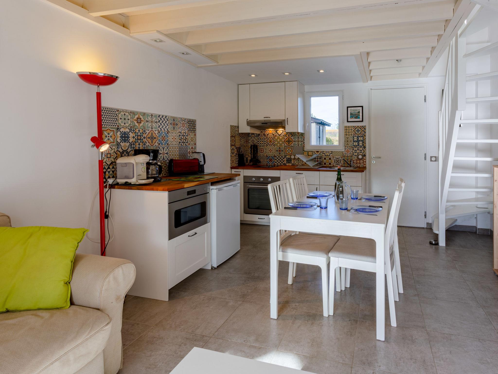 2-room apartment 33 m2, on the ground floor, south facing position. Living/dining room with 1 sofabed (140 cm, length 190 cm), TV (flat screen). Exit to the garden, to the terrace, south facing position. Kitchenette (oven, 2 ceramic glass hob hotplates, toaster, kettle, microwave, electric coffee machine) with dining table. Upper floor: 1 room with sloping ceilings with 1 french bed (140 cm, length 190 cm). Shower/WC. Electric heating. Terrace, patio 15 m2. Terrace furniture. Facilities: washing machine, iron. Internet (WiFi, free). Parking space n 222. Please note: non-smoking house. Smoke alarm. Offer by a private individual according to Art. 155, IV of CGI.