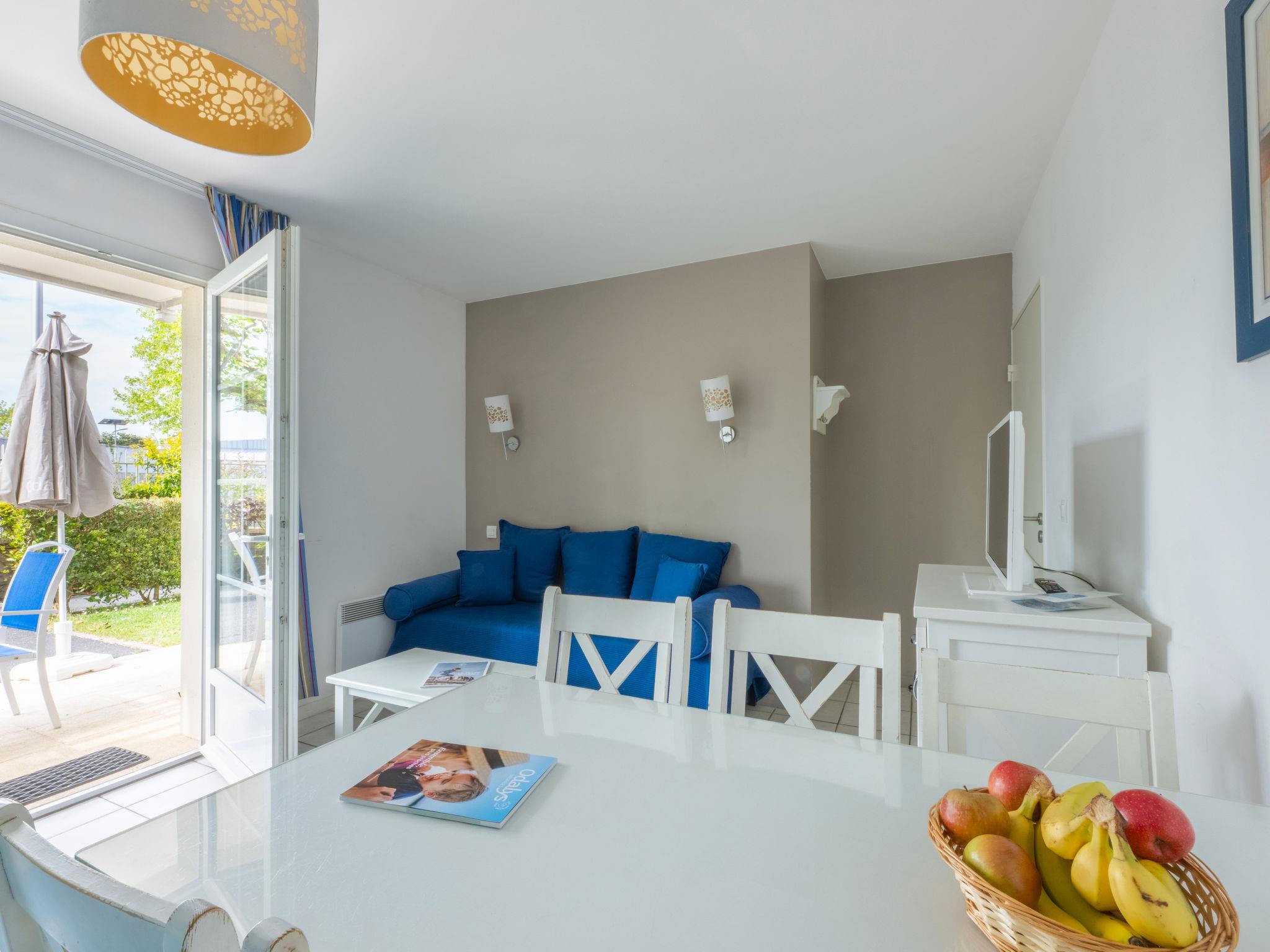 "Odalys Référence Le Domaine des Dunettes", 2-room apartment 34 m2. Practical furnishings: living/sleeping room with 2 sleeping facilities, dining table and TV. 1 room with 2 sleeping facilities. Kitchenette (dishwasher, 2 ceramic glass hob hotplates, kettle, microwave, electric coffee machine). Sep. WC, double hand-basin, bath/WC or shower/WC. Electric heating. Facilities: children's high chair, baby cot (extra). Internet (WiFi, free). Please note: non-smokers only. Maximum 2 pets/ dogs allowed. Fire extinguisher.
