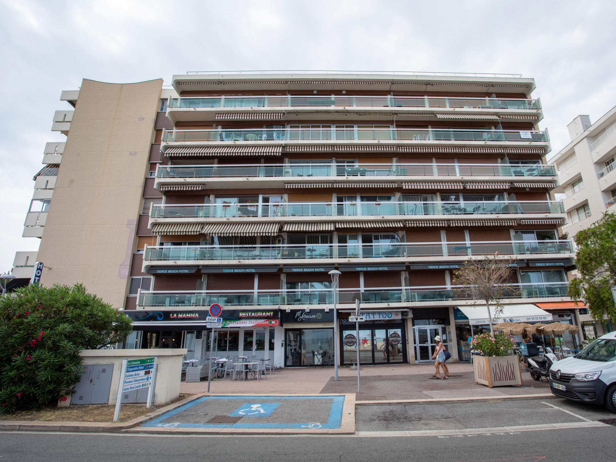 Residence "Le Tiercé", 6 storeys. In a busy position in the residential district, 50 m from the sea, from the beach. Grocery 600 m, supermarket, shopping centre 3.6 km, restaurant 300 m, bakery 350 m, bicycle rental 100 m, bus stop 100 m, railway station "centre ville" 1.1 km, shingle beach "plage de l'hippodrome" 50 m. Sports harbour 2.6 km, marina 2.6 km. Nearby attractions: hippodrome de la côte d'azur 100 m, Haut de cagnes 2.1 km, centre commercial polygone riviera 3.6 km, musée Renoir Cagnes 2 km, Nice 10 km.