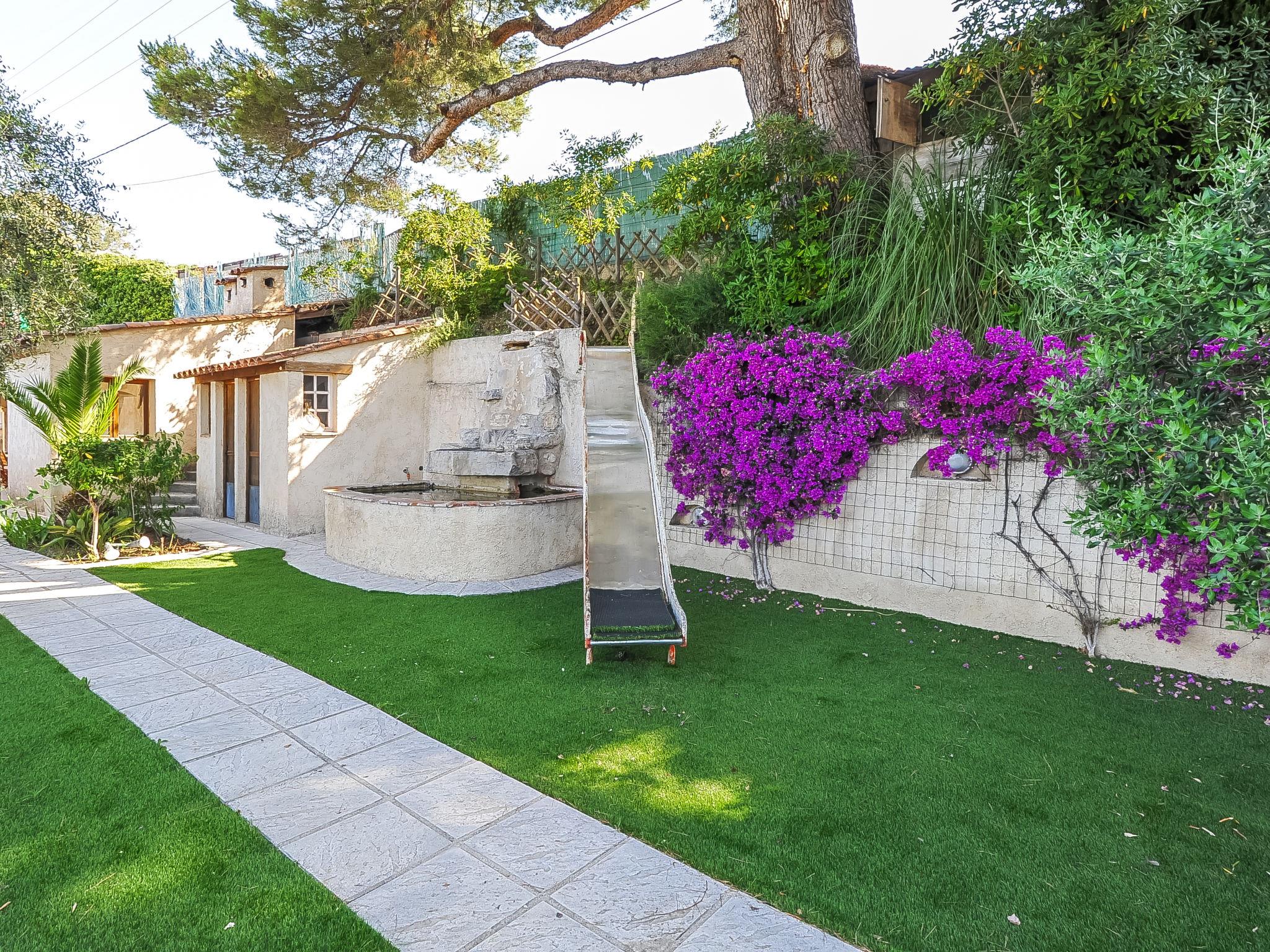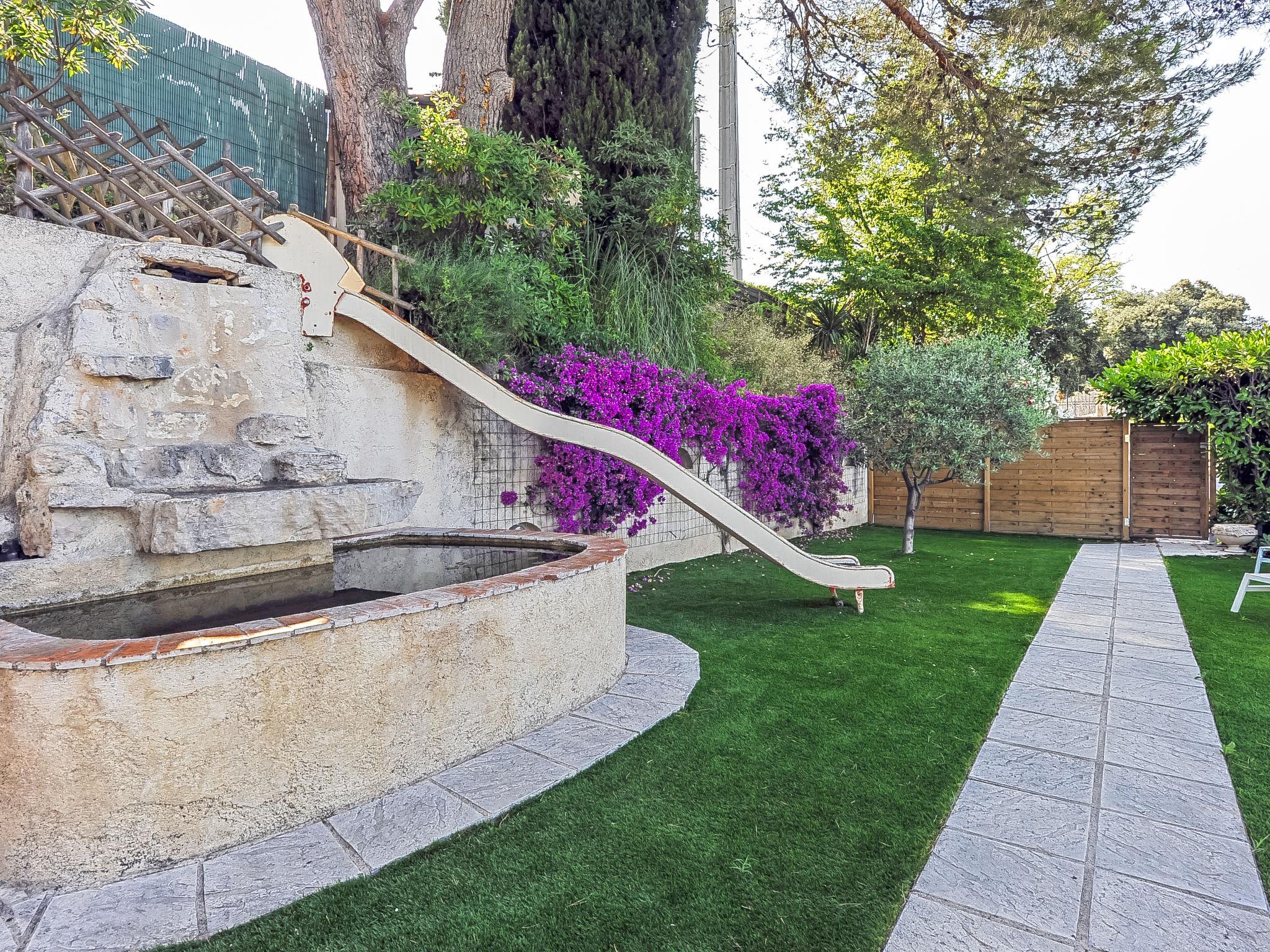 Beautiful terraced house "Nicoleine", 2 storeys, built in 1991, renovated in 2011. In the district of Les caucours 2.6 km from the centre of Cagnes sur Mer, in a quiet, sunny, elevated position in the residential district, 4.3 km from the sea, 4.3 km from the beach. Private: beautiful garden to relax, swimming pool (above ground) round (4 m diameter, depth 100 cm, seasonal availability: 01.Apr. - 31.Oct.) with alarm system. WC in the pool area, hot tub, pool house with fridge, table tennis, boules, terrace (100 m2), barbecue, barbecue house (slide), planted inner courtyard parking (for 3 cars) at the house, single garage at the house. Shop 2.6 km, supermarket 2.7 km, shopping centre 4.3 km, restaurant 3 km, bakery 2.5 km, bus stop "Cimetière de la Buffe ligne 94" 1.9 km, railway station "Cagnes sur Mer" 4.6 km, shingle beach "Plage publique" 4.3 km, diving center 5 km. Sports harbour 7 km, golf course (18 hole) 20 km, tennis 3.3 km, riding stable 5 km. Nearby attractions: Chateau Grimaldi 2.2 km, Musée Renoir 3.4 km, Vence 6.5 km, Saint Paul de Vence 6.6 km, MarinelandAntibes 9 km, Nice 17 km. Well-known lakes can easily be reached: Saint Cassien 52 km. Hiking paths: Col de Vence 16 km, Parc National du Mercantour 61 km. Please note: car recommended. Residence with electric gates.