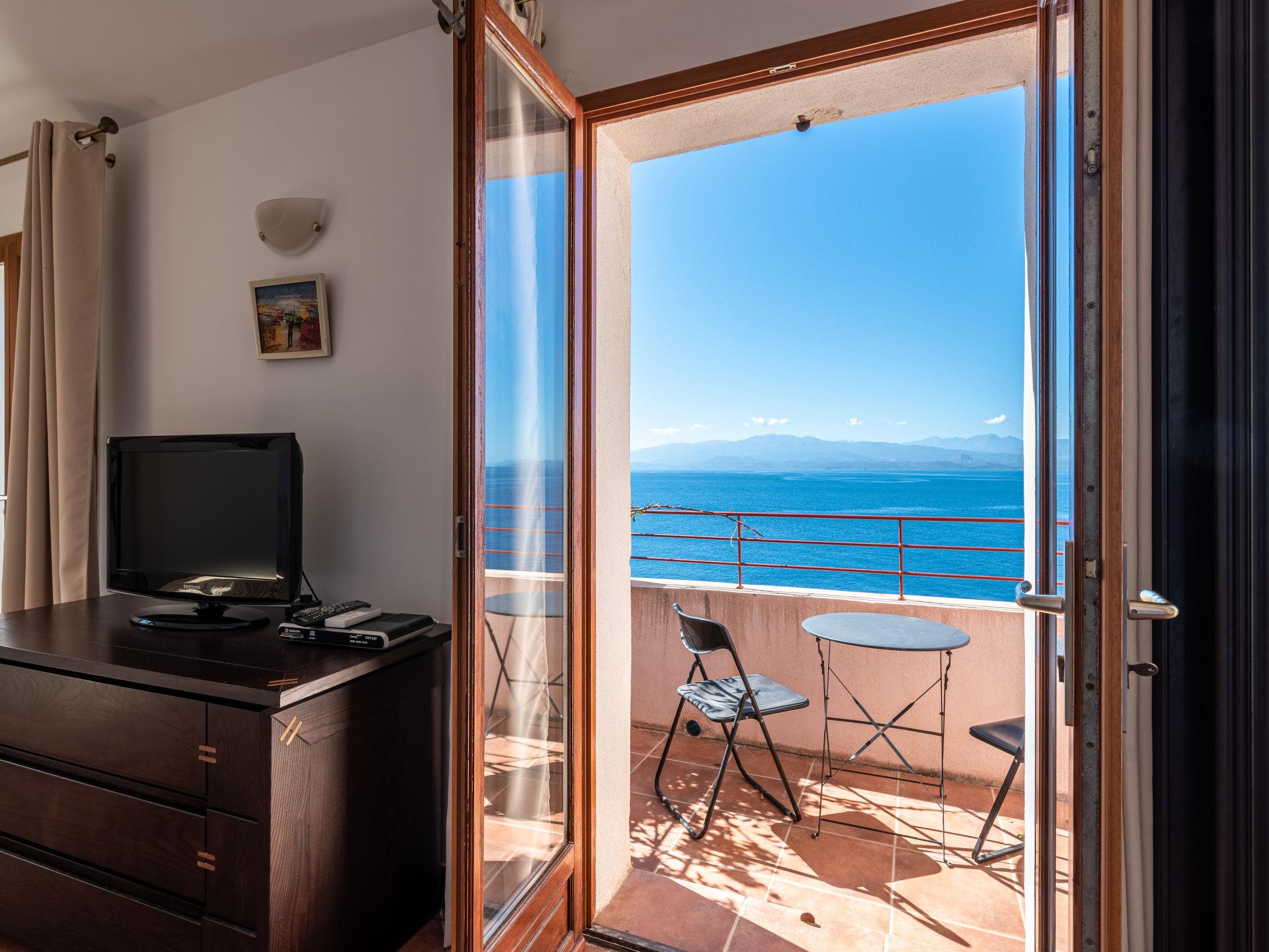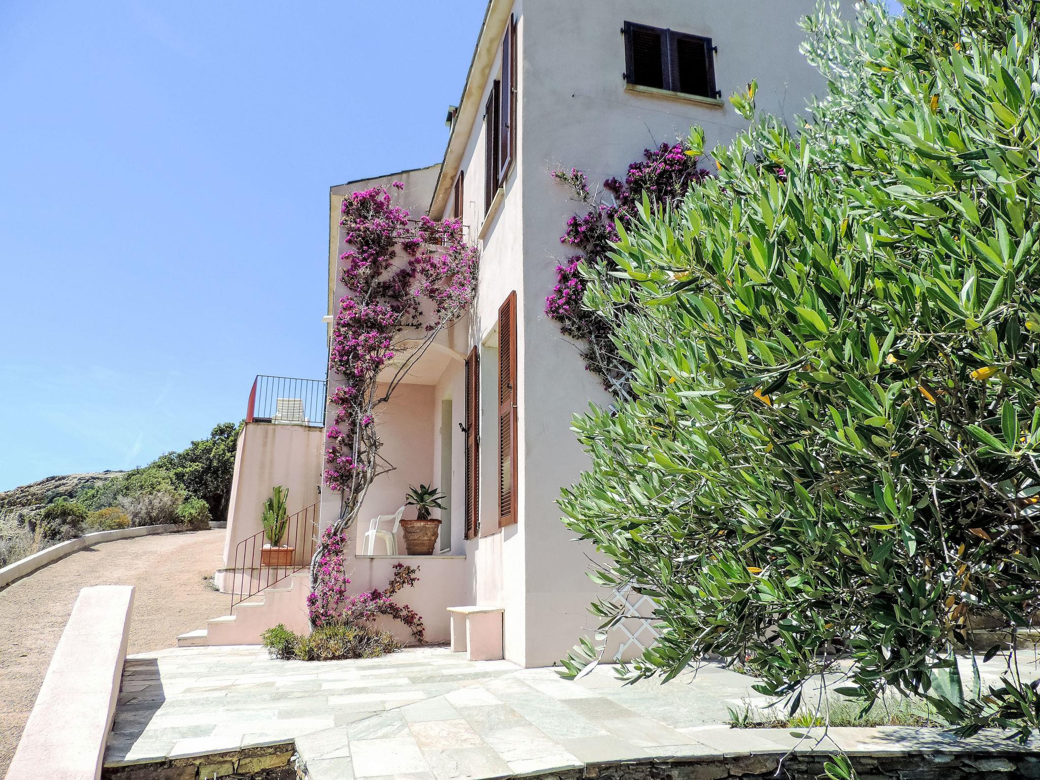 "Maison Balbi", 5-room house 140 m2 on 2 levels. Spacious, modern and tasteful furnishings: 1 room with 1 french bed (160 cm, length 200 cm). 1 room with 2 beds (90 cm, length 190 cm). Shower, sep. WC. Upper floor: large living/dining room with open-hearth fireplace, dining table, satellite TV and hi-fi system. Exit to the terrace. Small walk-through room. Exit to the terrace. 1 large room with 1 french bed (180 cm, length 200 cm), satellite TV. Exit to the balcony. Open kitchen (oven, dishwasher, 4 induction hot plates, toaster, kettle, microwave, freezer, electric coffee machine, Capsules for coffee machine (Nespresso) extra, fondue Set (cheese)) with small bar. Shower/WC. Electric heating, air-conditioning. Natural stone floors. Small balcony, large terrace, small patio, porch. Terrace furniture, balcony furniture, barbecue (portable), deck chairs, box-room. Marvellous panoramic view of the sea and Golfe de Saint-Florent. Facilities: washing machine, iron, baby cot. Internet (WiFi, free). Please note: non-smokers only. Maximum 1 pet/ dog allowed. Smoke alarm, fire extinguisher. 2B058000025Q2
