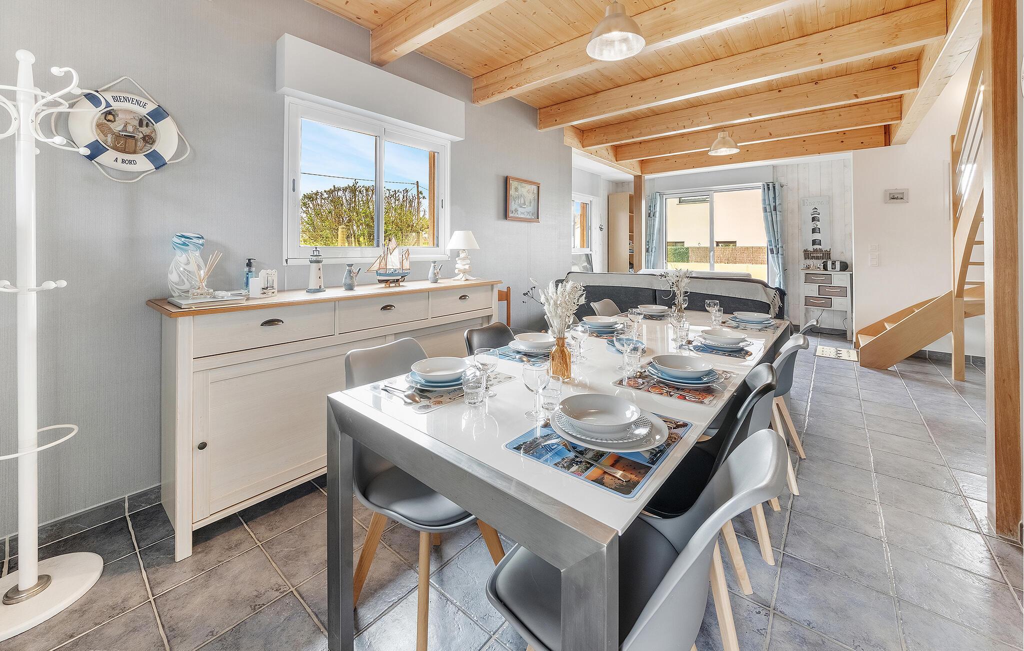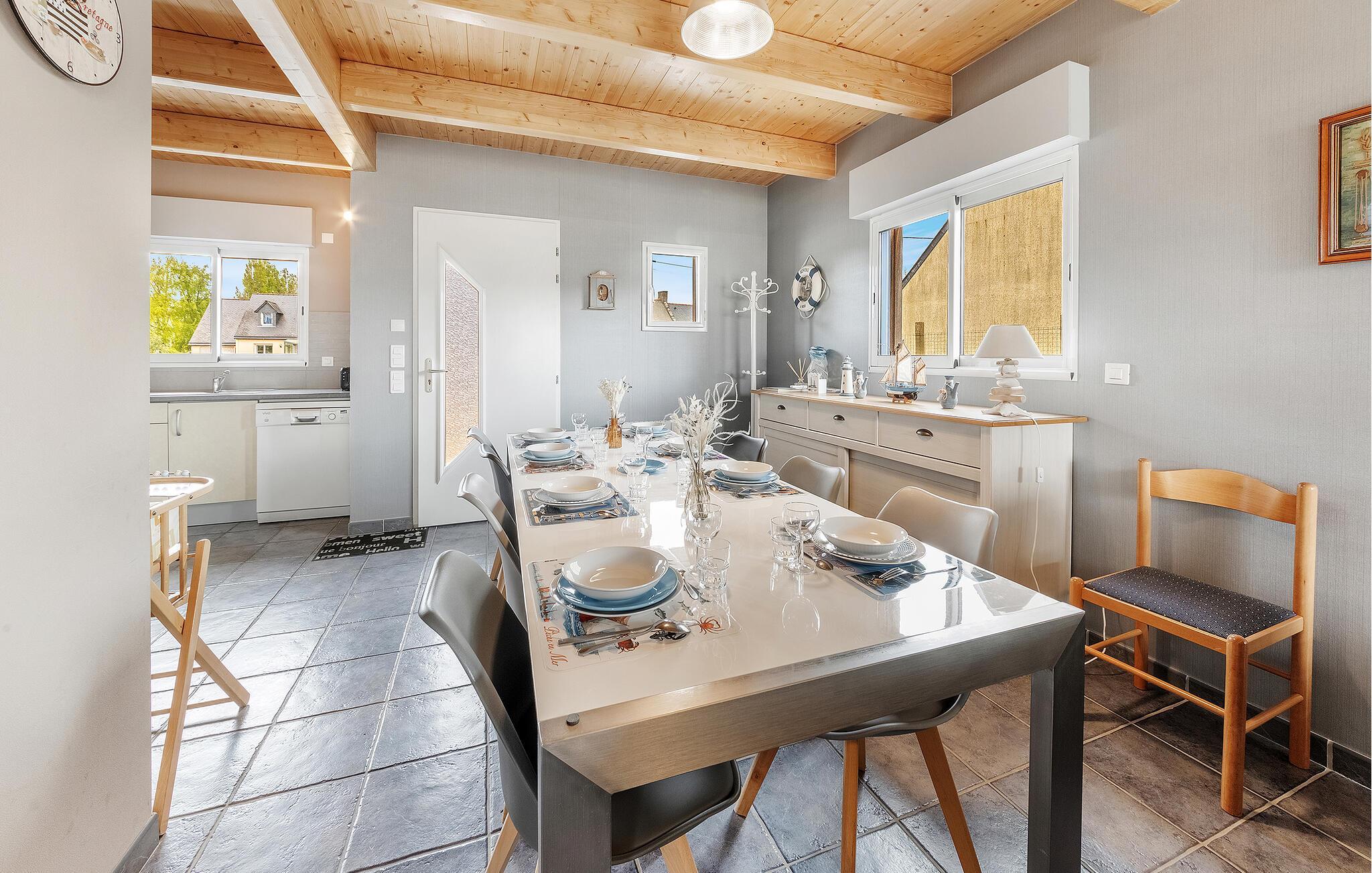 Hier können Sie in ansprechendem Rahmen entspannen. Das schöne Haus erwartet Sie nicht weit vom Meer. Mit seinen hellen Räumen und der wohnlichen Einrichtung ist es der ideale Ort für eine schöne Auszeit auch mit der größeren Familie. Nutzen Sie das Haus als Basis für einen herrlichen Strandurlaub mit Erkundungen der Bretagne. Machen Sie es sich nach einem unvergesslichen Tag am Esstisch bequem oder entspannen Sie auf den gemütlichen Sofas.