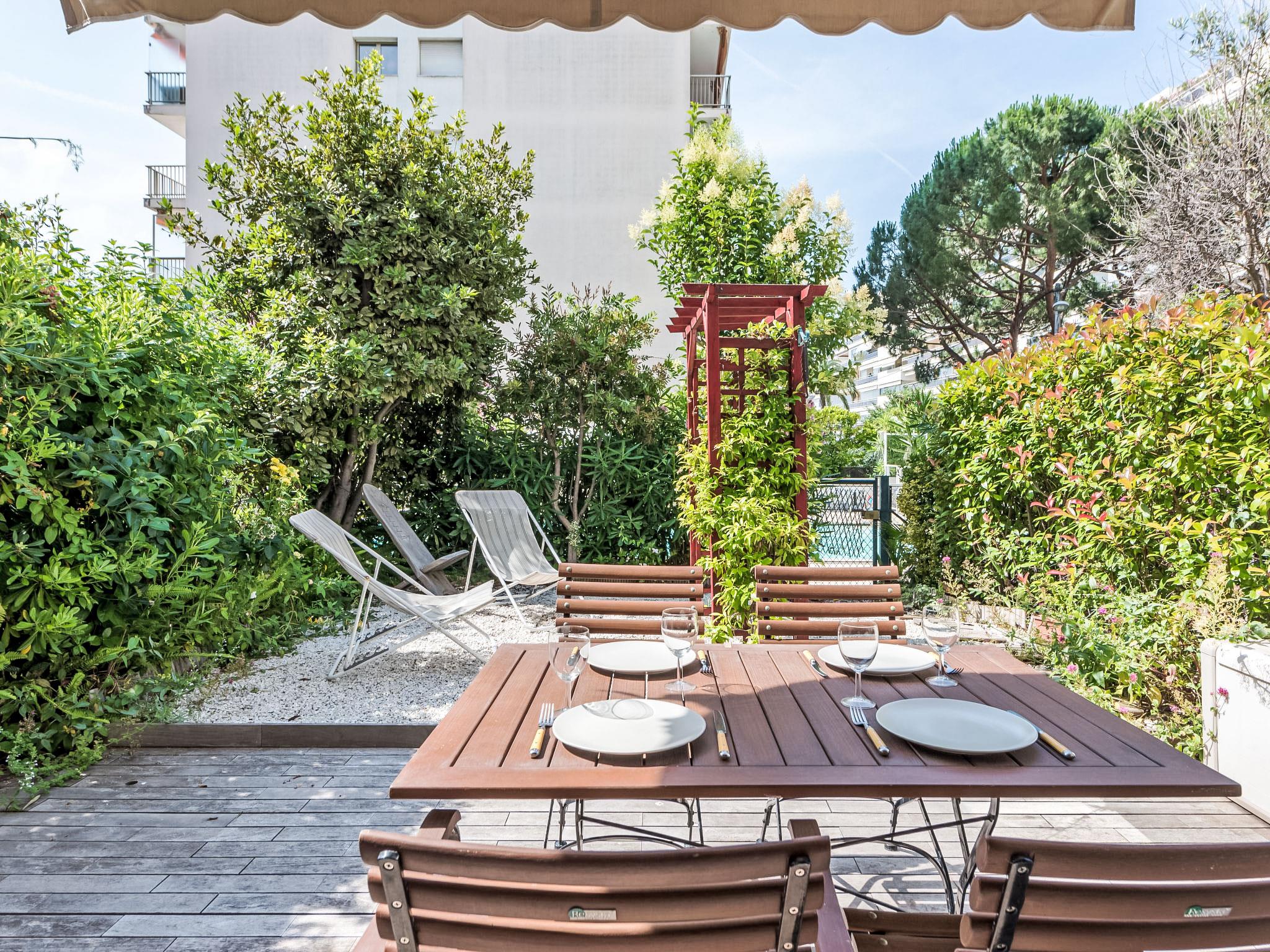 1-room apartment 40 m2, on the ground floor. Spacious, fully renovated, comfortable and beautiful furnishings: living/dining room with TV and air conditioning. Exit to the terrace. Alcove with 1 french bed (140 cm, length 190 cm). Open kitchen (dishwasher, 3 induction hot plates, combination microwave). Shower, sep. WC. Forced-air heating. Terrace 20 m2, patio 20 m2. Terrace furniture. View of the swimming pool. Facilities: washing machine. Internet (WiFi, free). Please note: smoke alarm. Instead of an enclosed bedroom, some sleeping areas are located in an open-plan area (gallery, alcove, etc.). 06029009279WF