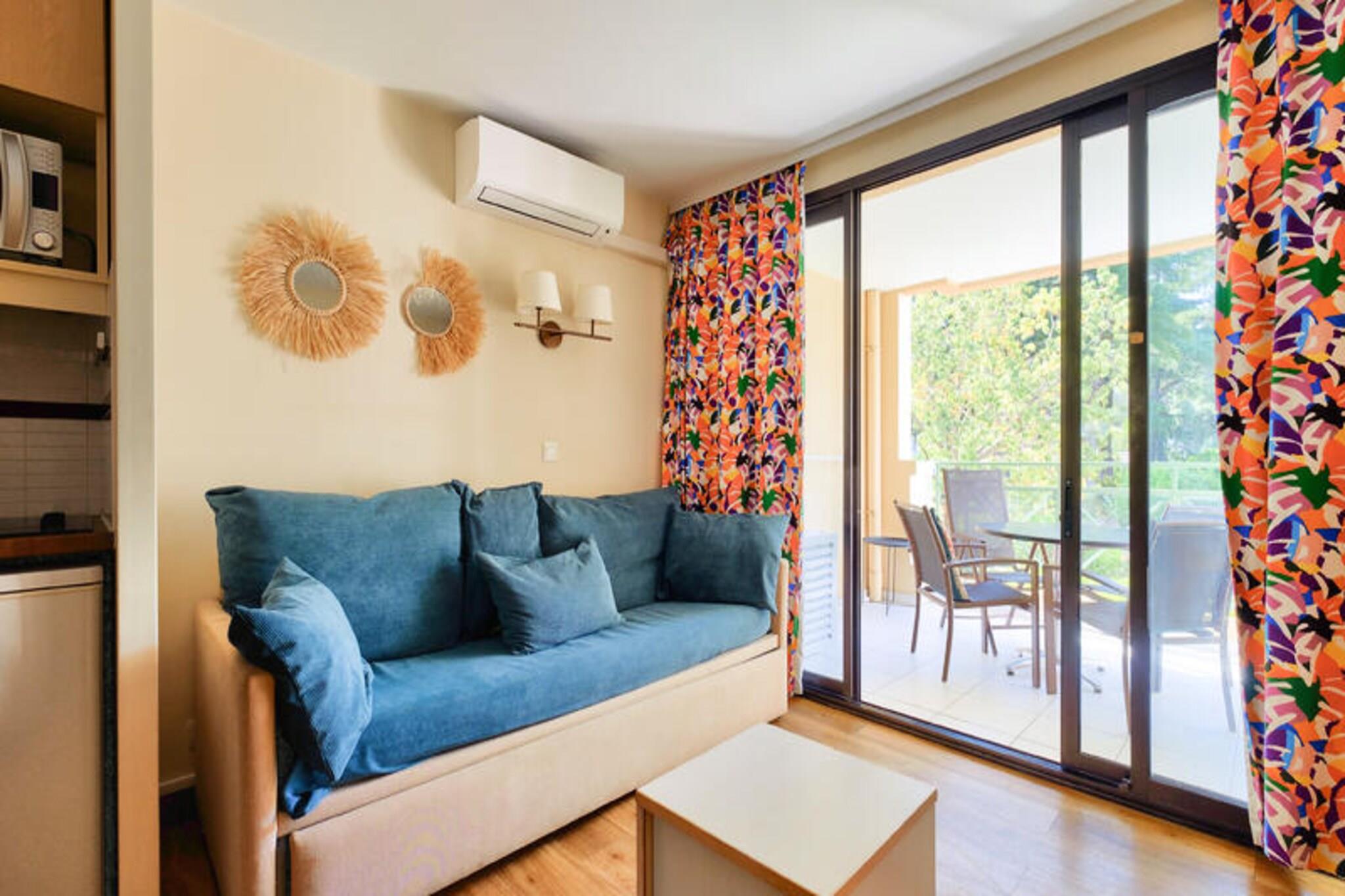 Nestled in the tranquil La Croix des Gardes district of Cannes, just 2 kilometers from the lively city center and the iconic Croisette, this charming vacation rental offers the perfect combination of comfort, relaxation, and stunning sea views. Set within a sprawling 5-hectare exotic park dotted with century-old trees and palm groves, this property boasts a serene green setting with panoramic sea views from the terrace and infinity pool. The unheated infinity pool, available from April 15 to November 4, is complemented by a children’s paddling area and deckchairs (available at an additional cost). Guests can also enjoy the nearby sandy beach just 800 meters away. Designed with families in mind, the property offers access to various leisure activities, including ping pong, a tennis court near the Picasso building, and a children's play area. Additionally, an 18-hole golf course is located a short 20-minute drive away, and water sports like water skiing are accessible nearby. The spacious 28 m² apartment, located on the first floor of the Matisse building, features one comfortable bedroom, a living area with a single pull-out sofa bed, a well-equipped kitchen, and a bathroom with a bathtub and separate toilet. A private balcony offers a perfect space to unwind. Additional amenities include parking, optional Wi-Fi, and baby equipment.
