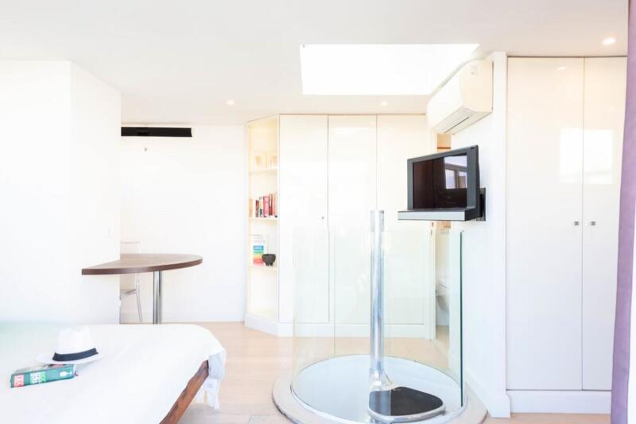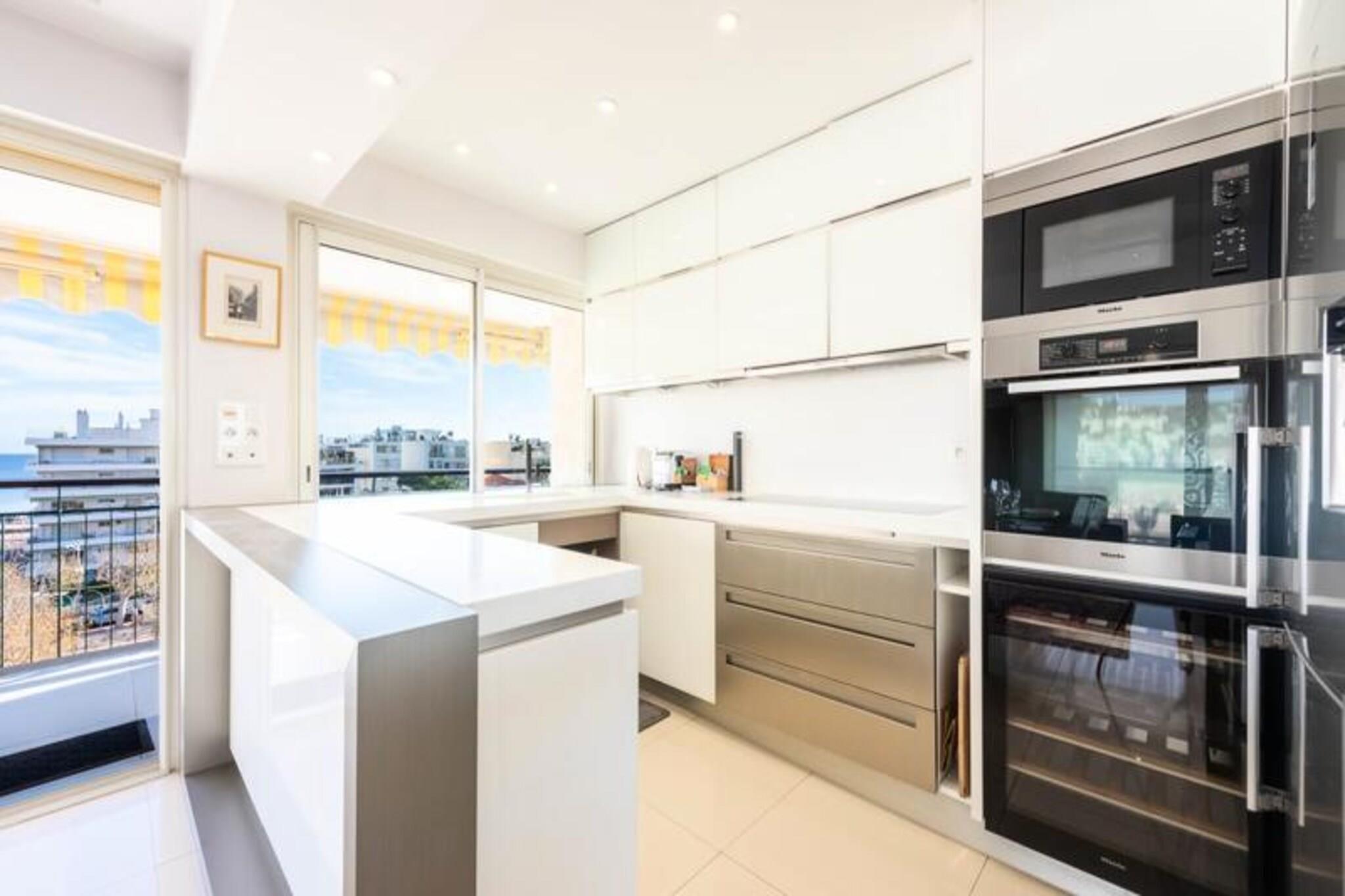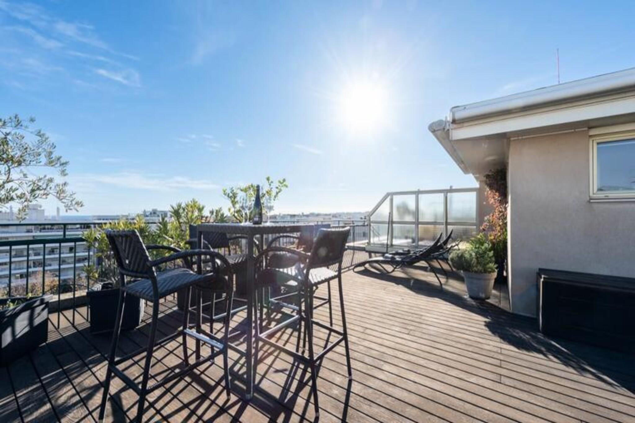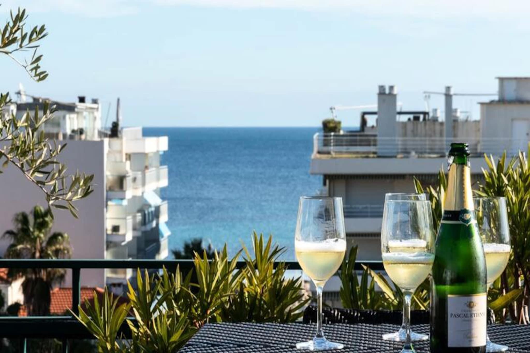 Step into a world of elegance and coastal charm with this exceptional corner duplex apartment in the prestigious Palm Beach area of Cannes. Bathed in natural light, this rare gem offers a luxurious escape just moments from the golden beaches and the iconic Croisette promenade. Imagine sipping your morning coffee on the furnished rooftop terrace as the Mediterranean sparkles before you, or unwinding in the evening with panoramic sea views that soothe the soul. The apartment is thoughtfully designed to combine comfort and style. On the main level, a spacious living room with two plush sofas invites relaxation, while the dining area opens onto a large terrace perfect for al fresco meals. The fully equipped open-plan kitchen boasts a generous worktop, making it a delight for culinary enthusiasts. A serene bedroom with a double bed, air conditioning, and a TV, along with a modern shower room and separate toilet, complete this floor. Upstairs, the en-suite bedroom features a cozy desk area, a sofa, and direct access to the stunning rooftop terrace, furnished with sun loungers and a high table for unforgettable outdoor moments. Your stay is enhanced by the convenience of a private underground garage, Wi-Fi, and reversible air conditioning throughout the apartment. Beyond the property, explore the vibrant surroundings of Palm Beach. Stroll to the nearby beaches, indulge in fine dining at local restaurants, or immerse yourself in the glamour of La Croisette. For a touch of adventure, visit the Lérins Islands or enjoy the lively atmosphere of the Palm Beach Casino and Port Canto. Whether you’re seeking relaxation, exploration, or a blend of both, this apartment offers the perfect base for an unforgettable stay in Cannes. Let our concierge service take care of the details, so you can focus on creating memories that will last a lifetime.