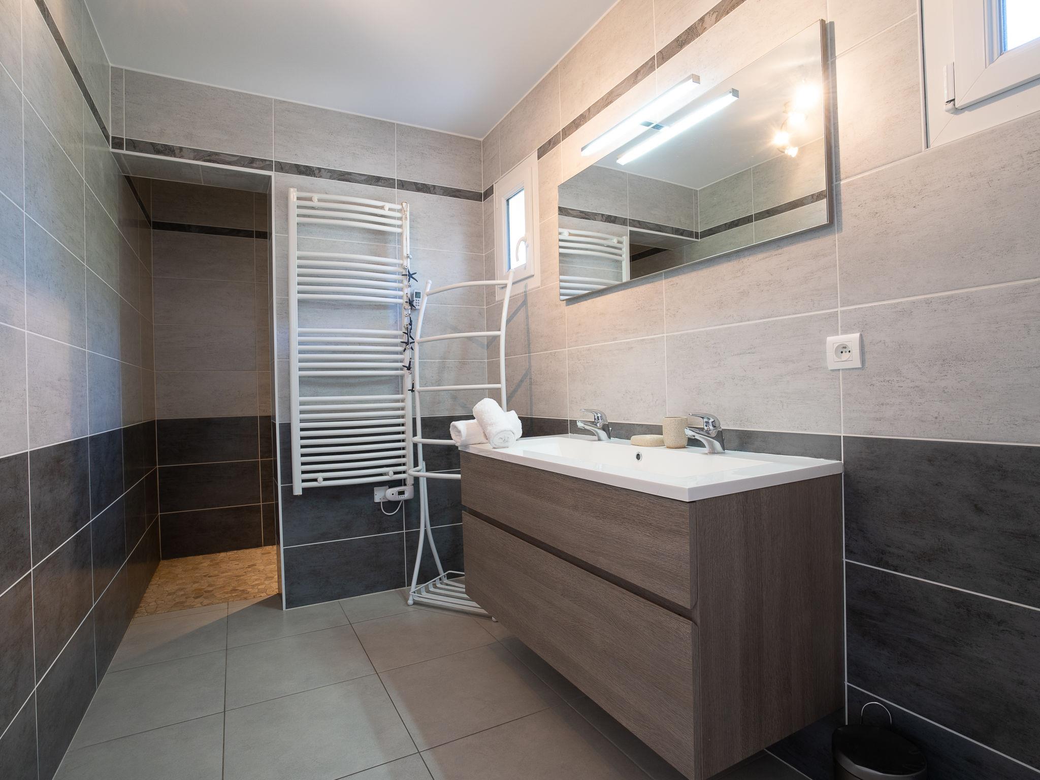 7-room villa 158 m2, south facing position. Spacious and bright, fully in 2014, very comfortable and modern furnishings: large dining room 39 m2 with panoramic window south facing position with flat screen and air conditioning. Exit to the terrace, to the swimming pool. Lounge 29 m2 with panoramic window with digital TV and air conditioning. Exit to the terrace, to the swimming pool, south facing position. 1 room 12 m2 with 1 french bed (160 cm, length 200 cm), hand-basin, shower and air conditioning. Exit to the garden. 1 room 17 m2 with 1 french bed (160 cm, length 200 cm), hand-basin, shower and air conditioning. 1 room 10 m2 with 1 french bed (140 cm, length 190 cm). Open kitchen (oven, dishwasher, 2 ceramic glass hob hotplates, microwave, freezer, electric coffee machine). Bathroom, sep. WC. Upper floor: 1 room 14 m2, with sloping ceilings, ceiling height 110 - 206 cm with 1 french bed (140 cm, length 190 cm), air conditioning. 1 room 9 m2, with sloping ceilings, ceiling height 110 - 206 cm with 1 french bed (140 cm, length 190 cm). 2 large terraces. Terrace furniture, deck chairs. Facilities: washing machine, iron, hair dryer. Internet (WiFi, free). Please note: maximum 1 pet/ dog allowed. Smoke alarm. Spring 2016 New garden design and design of a beautiful summer kitchen with grill, griddle built into the work plan.