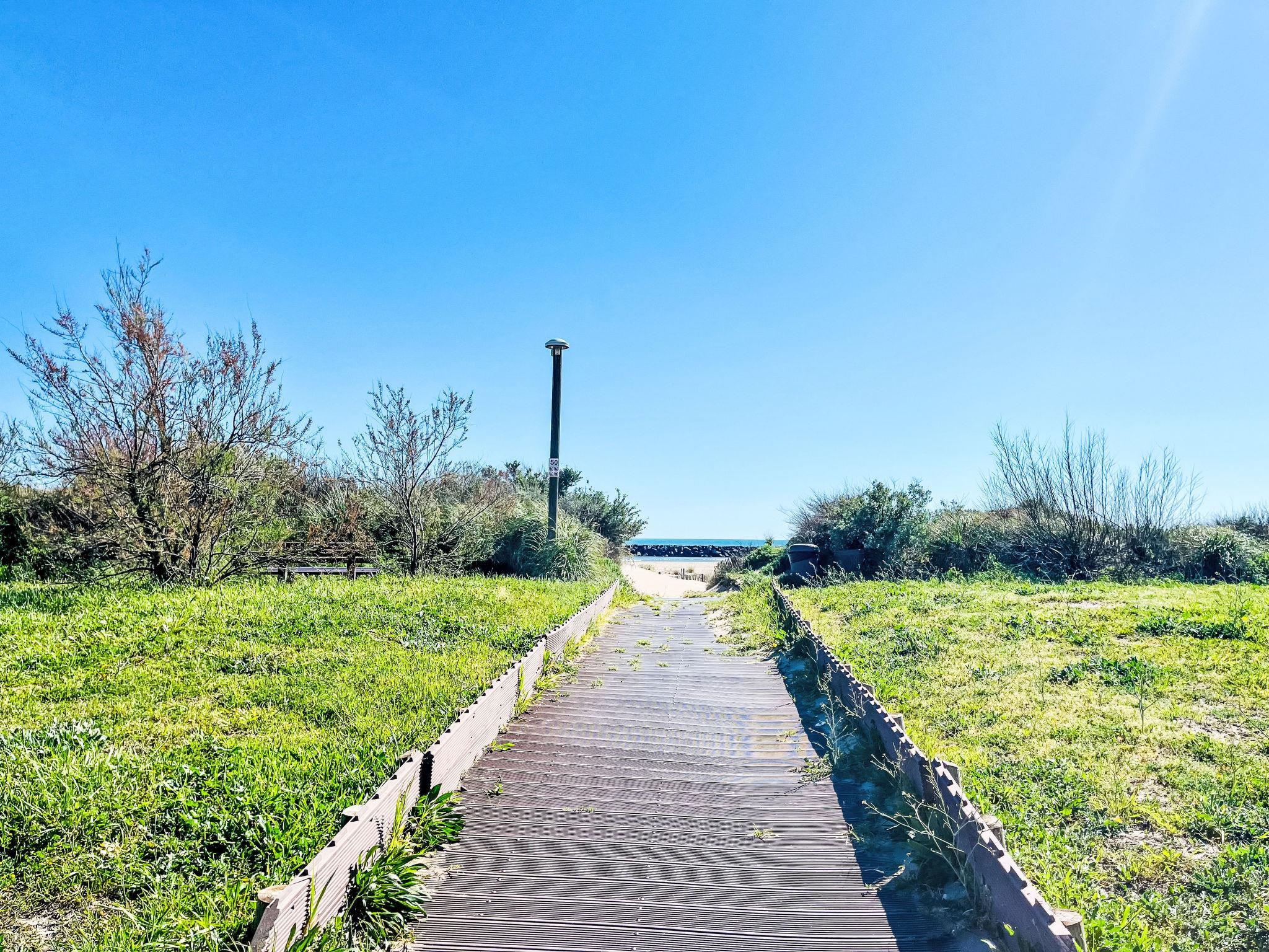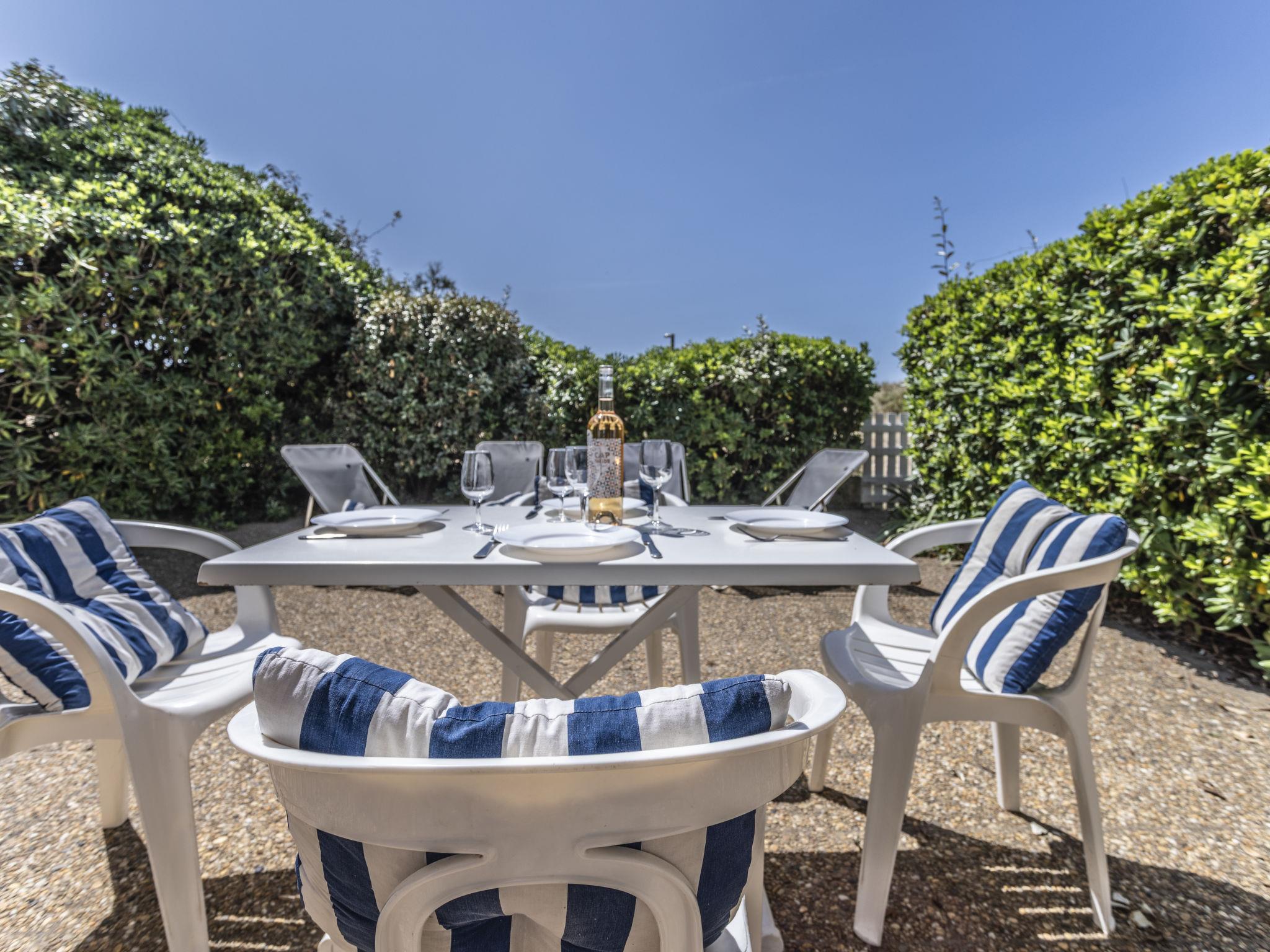 Residence "Les Maisons sur la Plage". In the district of Richelieu, 80 m from the sea, 80 m from the beach, direct access to the beach. For shared use: large garden with lawn. Grocery, restaurant, bar 100 m, bakery, café 50 m, 20 minute walk to the centre, bus stop "Pacifique" 350 m, sandy beach "Richelieu" 180 m. Sports harbour 3 km, golf course (27 hole) 1 km, tennis 3.6 km. Nearby attractions: Aqualand 700 m, Ile des Loisirs 900 m, Aire de jeux 500 m, Casino 2.5 km. (15 June to 15 Sept). Centre, harbour with all shops 2 km.