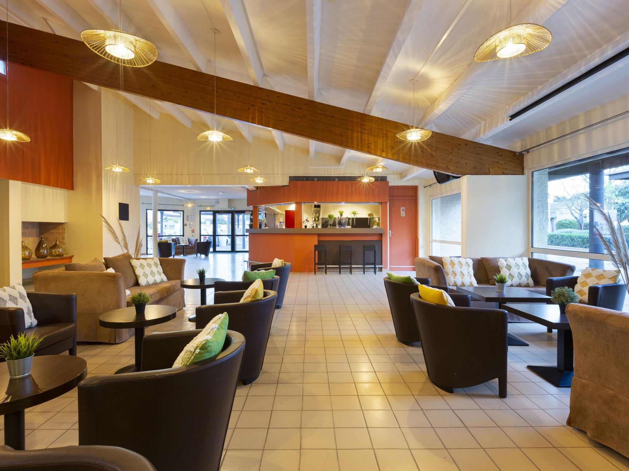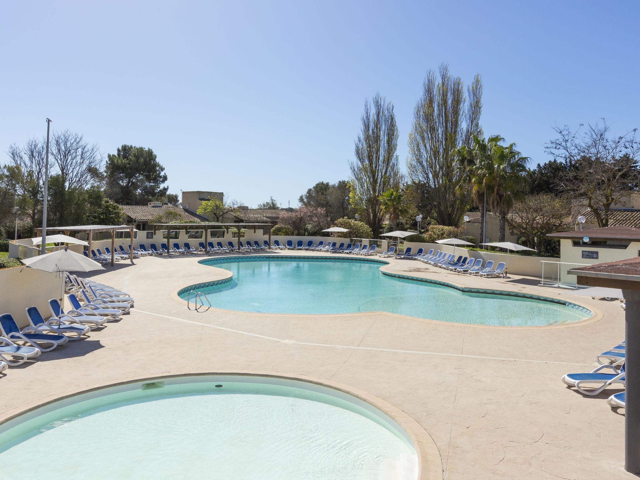 Holiday village "Sowell Résidence Les Lauriers Roses". 104 apartments in the residence. 800 m from the centre of Cap d'Agde, 25 km from the centre of Sète, 30 km from the centre of Béziers, 800 m from the sea, 800 m from the beach. For shared use: park 6 ha, swimming pool heated (200 m2, seasonal availability: 01.Apr. - 31.Oct.) with internal staircase. Children's pool, tennis (2 x hard court), table tennis, boccia, volleyball, beach volleyball, children's playground. In the complex: reception, restaurant, bar, WiFi, billiard table, washing machine, tumble dryer (for shared use, extra). Central parking spaces. Shop 500 m, bus stop 300 m, sandy beach "Plage de la Roquille" 800 m. Sports harbour 3.5 km. Nearby attractions: Luna Park / Aqualand / 3 km, Agde 5 km, Sète 25 km, Béziers / Pézenas 28 km, Narbonne / Montpellier 60 km, Zoo Sigean 75 km. Please note: car-free holiday complex. Suitable for families, baby equipment on request (included). The photograph shows a typical example. The holiday properties may differ in living space, floorplan, equipment and furnishing.