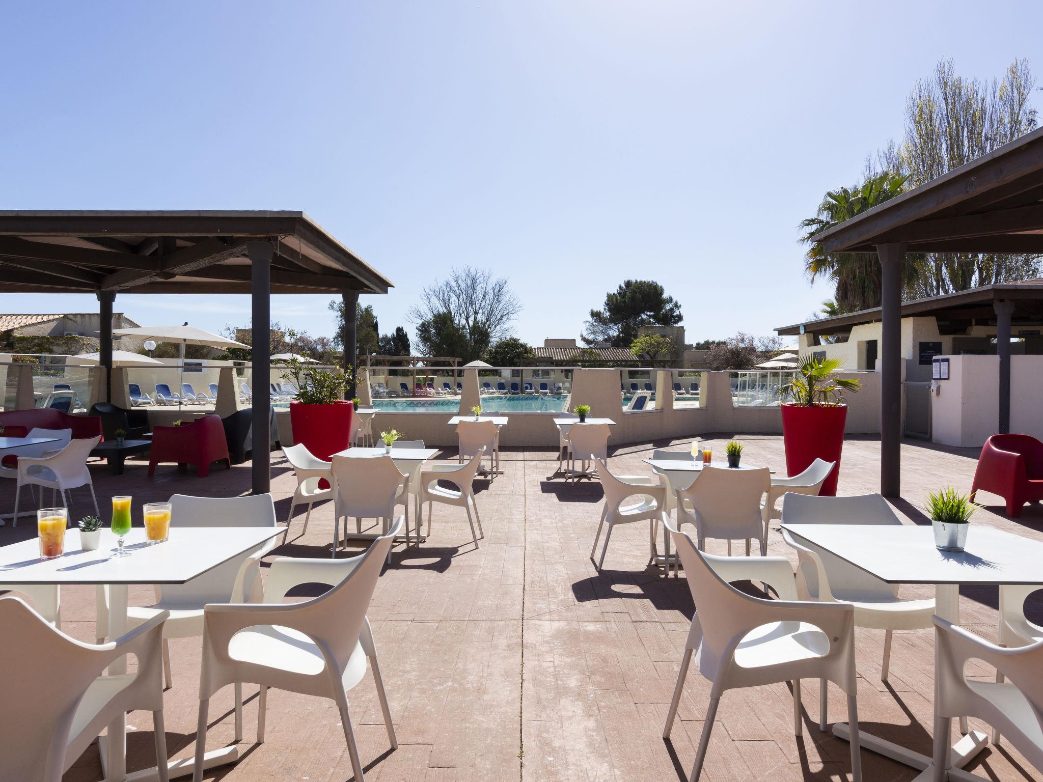 Holiday village "Sowell Résidence Les Lauriers Roses". 104 apartments in the residence. 800 m from the centre of Cap d'Agde, 25 km from the centre of Sète, 30 km from the centre of Béziers, 800 m from the sea, 800 m from the beach. For shared use: park 6 ha, swimming pool heated (200 m2, seasonal availability: 01.Apr. - 31.Oct.) with internal staircase. Children's pool, tennis (2 x hard court), table tennis, boccia, volleyball, beach volleyball, children's playground. In the complex: reception, restaurant, bar, WiFi, billiard table, washing machine, tumble dryer (for shared use, extra). Central parking spaces. Shop 500 m, bus stop 300 m, sandy beach "Plage de la Roquille" 800 m. Sports harbour 3.5 km. Nearby attractions: Luna Park / Aqualand / 3 km, Agde 5 km, Sète 25 km, Béziers / Pézenas 28 km, Narbonne / Montpellier 60 km, Zoo Sigean 75 km. Please note: car-free holiday complex. Suitable for families, baby equipment on request (included). The photograph shows a typical example. The holiday properties may differ in living space, floorplan, equipment and furnishing.