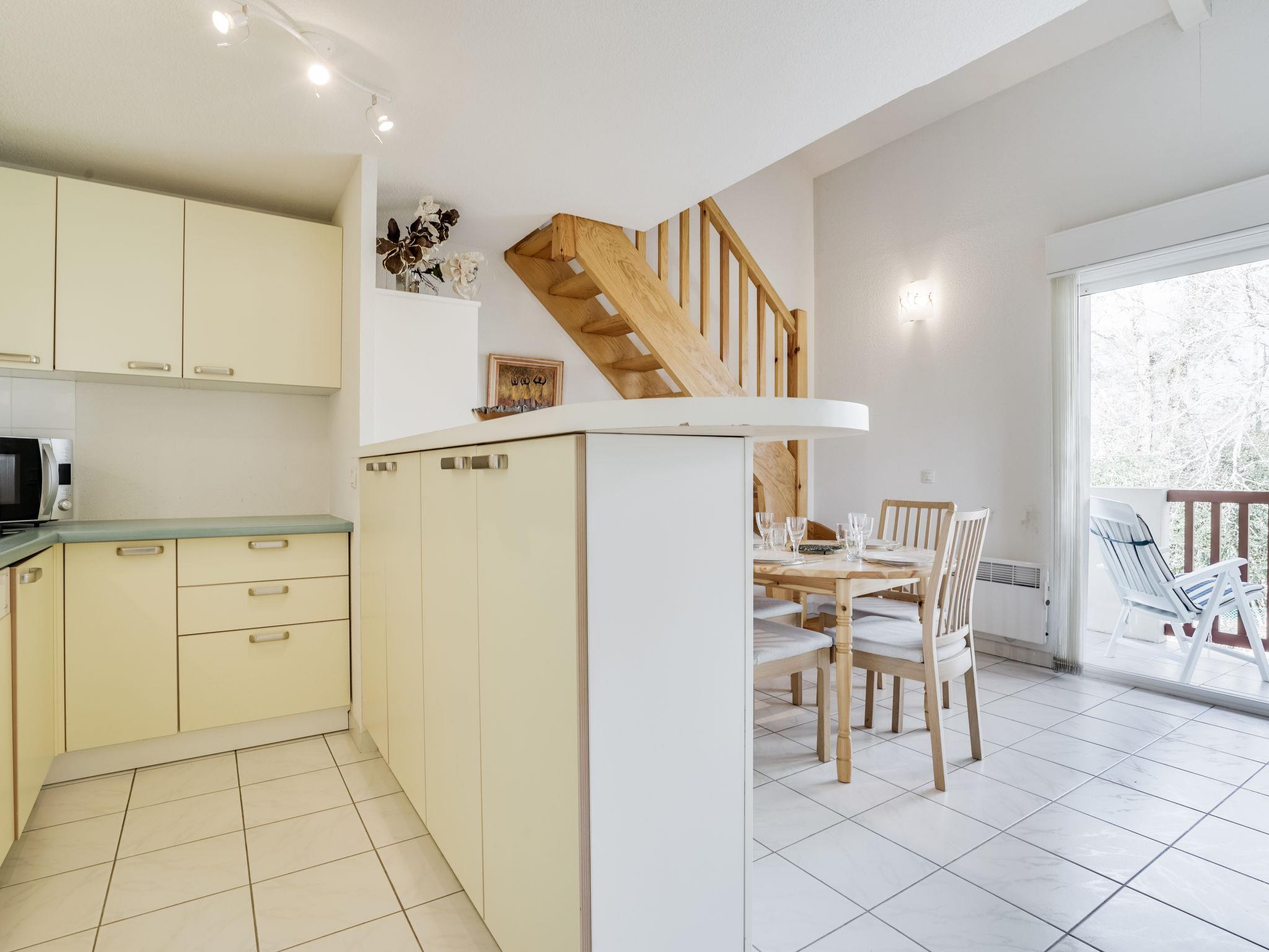 2-room maisonette 46 m2 on 1st floor. Practical and comfortable furnishings: living/dining room 15 m2 with 1 sofabed (140 cm, length 190 cm), TV (flat screen). Exit to the balcony. Open kitchen 9 m2 (oven, dishwasher, 4 induction hot plates, microwave, electric coffee machine). Sep. WC. Electric heating. Upper floor: 1 room 10 m2 with 1 french bed (160 cm, length 190 cm). Bathroom. Balcony 6 m2, north facing position and, east facing position. Balcony furniture. Facilities: washing machine, hair dryer. Internet (WiFi, extra). Parking space n 13. Please note: suitable for families. Non-smokers only. Smoke alarm. 400650001237X