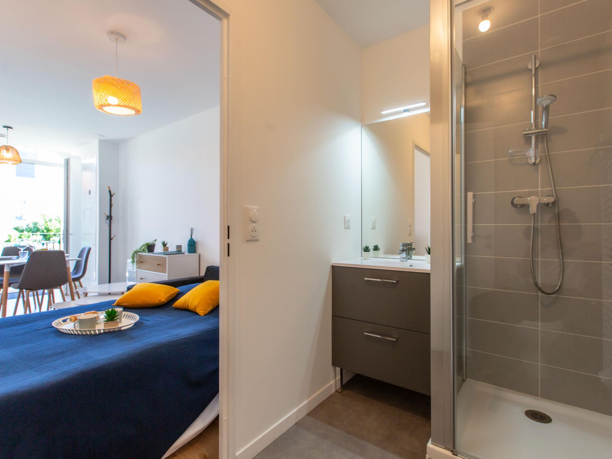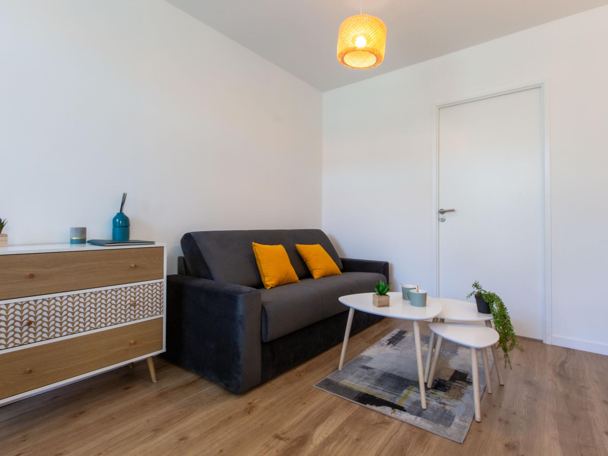 1-room studio 23 m2, on the upper ground floor. Modern and cosy furnishings: living/dining room with 1 double sofabed (140 cm, length 190 cm), TV (flat screen). Exit to the terrace, to the patio. Kitchenette (oven, dishwasher, 2 induction hot plates, toaster, kettle, microwave, electric coffee machine). Shower/WC. Electric heating. Small terrace 4 m2, small patio 6 m2. Terrace furniture. Facilities: hair dryer. Internet (WiFi, extra). Please note: non-smokers only. Offer by a private individual according to Art. 155, IV of CGI. 40065001451QW