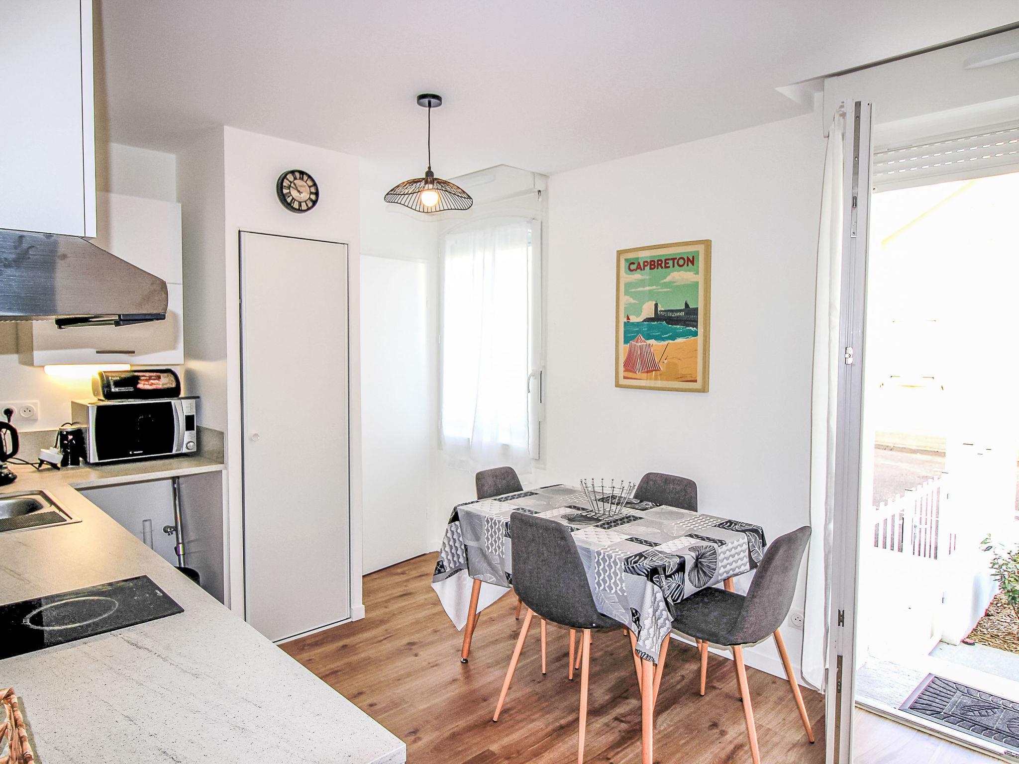 Capbreton: Apartment block "Cap Océan", 2 storeys, built in 2023. 17 apartments in the residence. In the resort, 150 m from the sea, 150 m from the beach. In the complex: washing machine, tumble dryer (for shared use). Public parking on the road. Shop 300 m, grocery 150 m, supermarket 1.8 km, restaurant 50 m, bakery 150 m, bicycle rental 100 m, bus stop "Capbreton Estacade" 300 m, sandy beach "Du Prévent" 150 m. Golf course (18 hole) 4 km, surf school 150 m, tennis 3 km, minigolf 200 m, riding stable 1 km. Nearby attractions: Seignosse 15 km, Bayonne 22 km, Dax 37 km, Biarritz 37 km. Well-known lakes can easily be reached: Réserve Naturelle des Marais d’Orx, Réserve Naturelle du courant d’Huchet.