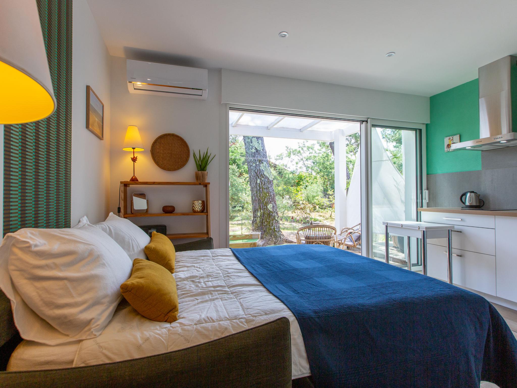 1-room studio 20 m2, east facing position. Comfortable and beautiful furnishings: living/dining room with 1 double sofabed (140 cm, length 190 cm), TV (flat screen). Exit to the terrace. Open kitchen (2 induction hot plates, toaster, kettle, microwave, electric coffee machine). Shower/WC. Electric heating. Terrace 7 m2, east facing position, garden 40 m2. Terrace furniture. Facilities: washing machine. Internet (WiFi, extra). Parking. Please note: non-smokers only. Smoke alarm. Offer by a private individual according to Art. 155, IV of CGI. 400650013982T