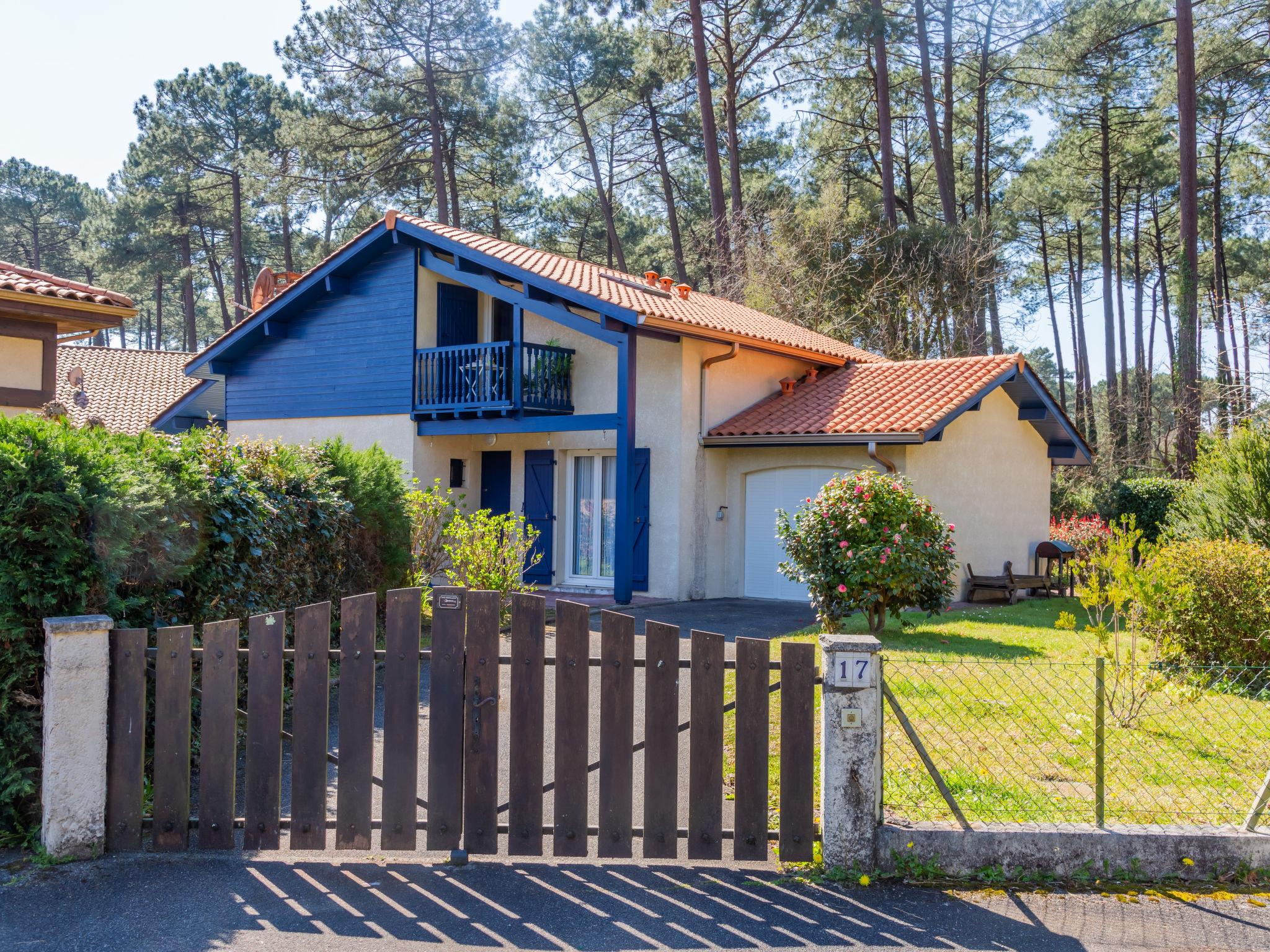 Capbreton 2 km from Hossegor: Residence "Bosquet des Ecureuils 17", surrounded by trees. With 45 houses, in the resort, 2 km from the centre, in a quiet position, 50 m from the edge of the forest, 3 km from the sea, 3 km from the beach, in a cul-de-sac. For shared use: swimming pool (seasonal availability: 01.Jul. - 15.Sep.). Parking (for 2 cars). Shop 2 km, supermarket 2 km, restaurant 2 km, bus stop 2 km. Sports harbour 2 km, golf course (18 hole) 2 km. Groups of teenagers on request only.