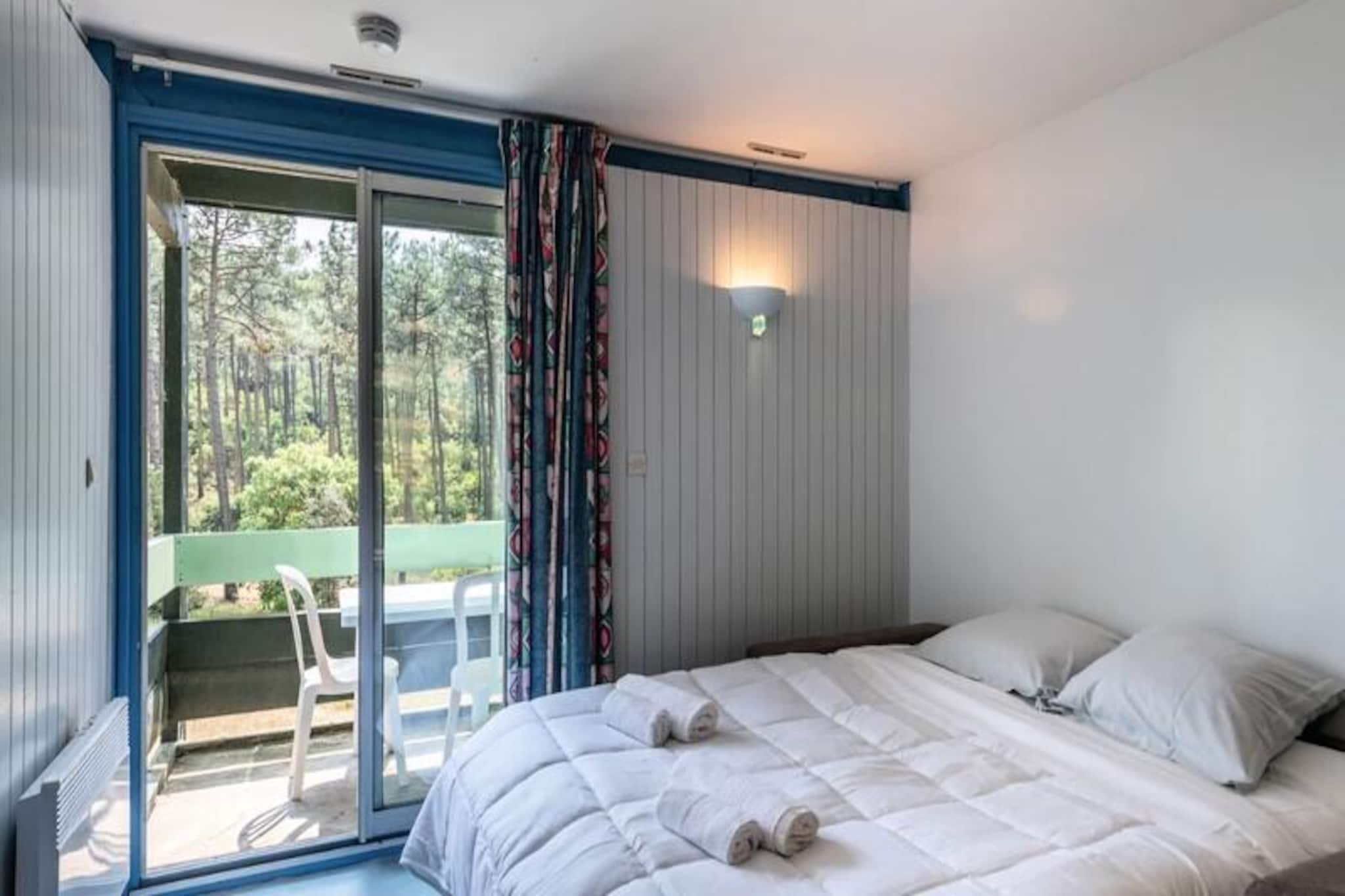 Résidence Domaine Les Cavales is located in Carcans on the Aquitaine coast. Its proximity to Lake Carcans and the Ocean on the other side make it a prime location for holidays surrounded by nature, focused on sports and water activities. The Residence Domaine Les Cavales is ideal for families: its 240m² swimming pool will be the favorite place for young and old on beautiful sunny days. The place leaves you dreaming, in the middle of the pines, the change of scenery will be total! If you are looking to recharge your batteries, this residence is made for you! You will be less than 5 minutes from Lake Carcans where you can practice different water activities: canoeing, windsurfing, optimist. You will have access to 120km of cycle paths directly from the residence, enough to discover the beautiful landscapes of the area at your own pace, by bike. Stay Equipped kitchen Room with 1 double bed Bedroom with 2x2 bunk beds Shower room, separate WC Covered balcony Please note: The accommodation is on the ground floor (a few steps to access the accommodation) Pets allowed - 10€/night/pet - 1 pet allowed per accommodation (not allowed in common areas) Deposit (additional) - 200 Baby kit - bed, bath and high chair: available for loan upon request when booking Bed linen - provided (beds not made on arrival) Bathroom linen - towel: EURO3.50; ; bath towel: EURO4.50; ; Bath kit (1 towel + 1 bath sheet + 1 mat): EURO7.50; End of stay cleaning - From 1 to 5 nights: Studio 2/3 people = 12 € / night 3 rooms 4/6 people = 18 € / night From 6 nights: Studio 2/3 people = 65 € 3 rooms 4/6 people = 90 € Parking - free Swimming pool - 240m² unheated swimming pool + 40m² paddling pool - open all season Tourist tax (additional charge) - according to current rates, payment on site