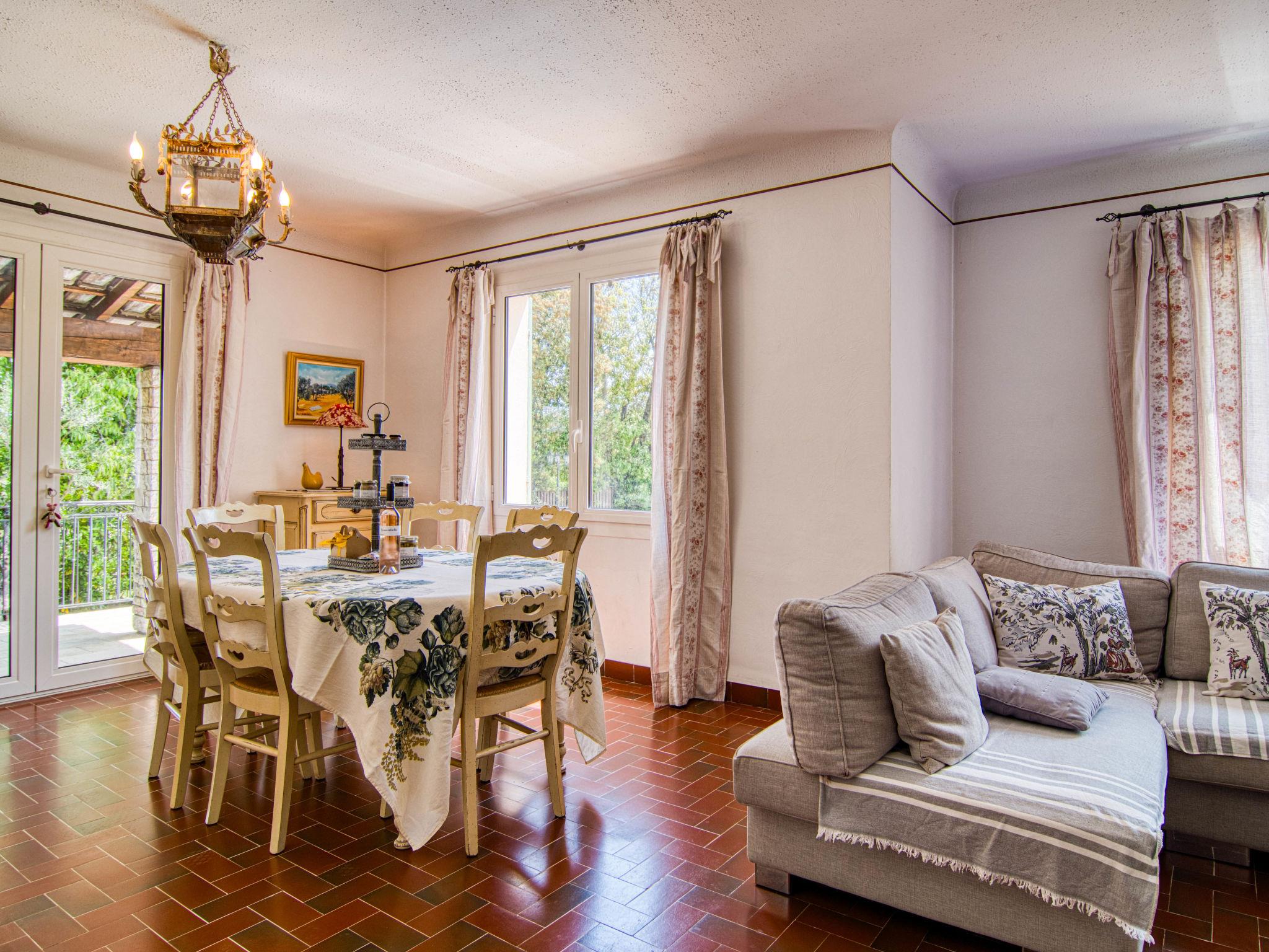 "Le Clos des Oliviers", 4-room house 150 m2. Comfortable furnishings: living/dining room with open-hearth fireplace, dining table and satellite TV. Exit to the terrace. 2 rooms, each room with 1 french bed (160 cm). 1 room with 1 x 2 bunk beds. Kitchen (1 hot plate, oven, dishwasher, 3 gas rings, toaster, microwave, freezer, electric coffee machine) with small dining table. Exit to the terrace. Shower, sep. WC, double hand-basin. Oil heating. Large terrace roofed. Terrace furniture, barbecue, deck chairs. View of the garden and the countryside. Facilities: washing machine, iron, mosquito net, baby cot. Internet (WiFi, free). Please note: non-smoking house. Smoke alarm. 83032000005EB