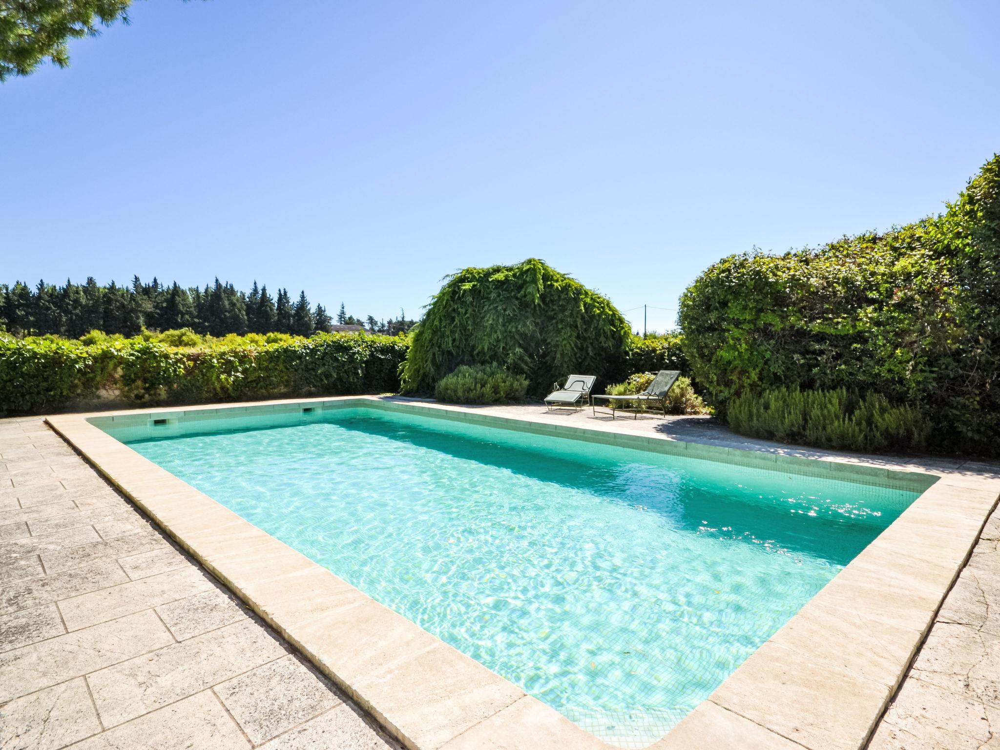 Beautiful mas "Les Puits Neufs", from the 19th century. 5 km from the centre of Cavaillon, 6 km from the centre of L'Isle-sur-la-Sorgue, 25 km from the centre of Avignon, in the countryside. Private: property 2'400 m2 (fenced), garden with trees, meadow, swimming pool fenced (10 x 5 m, depth 150 cm, seasonal availability: 01.May. - 30.Sep.). Terrace. Motor access (300 m via unmade road). Parking at the house. Supermarket 5 km, bus stop "Les Jonquiers" 3.1 km.