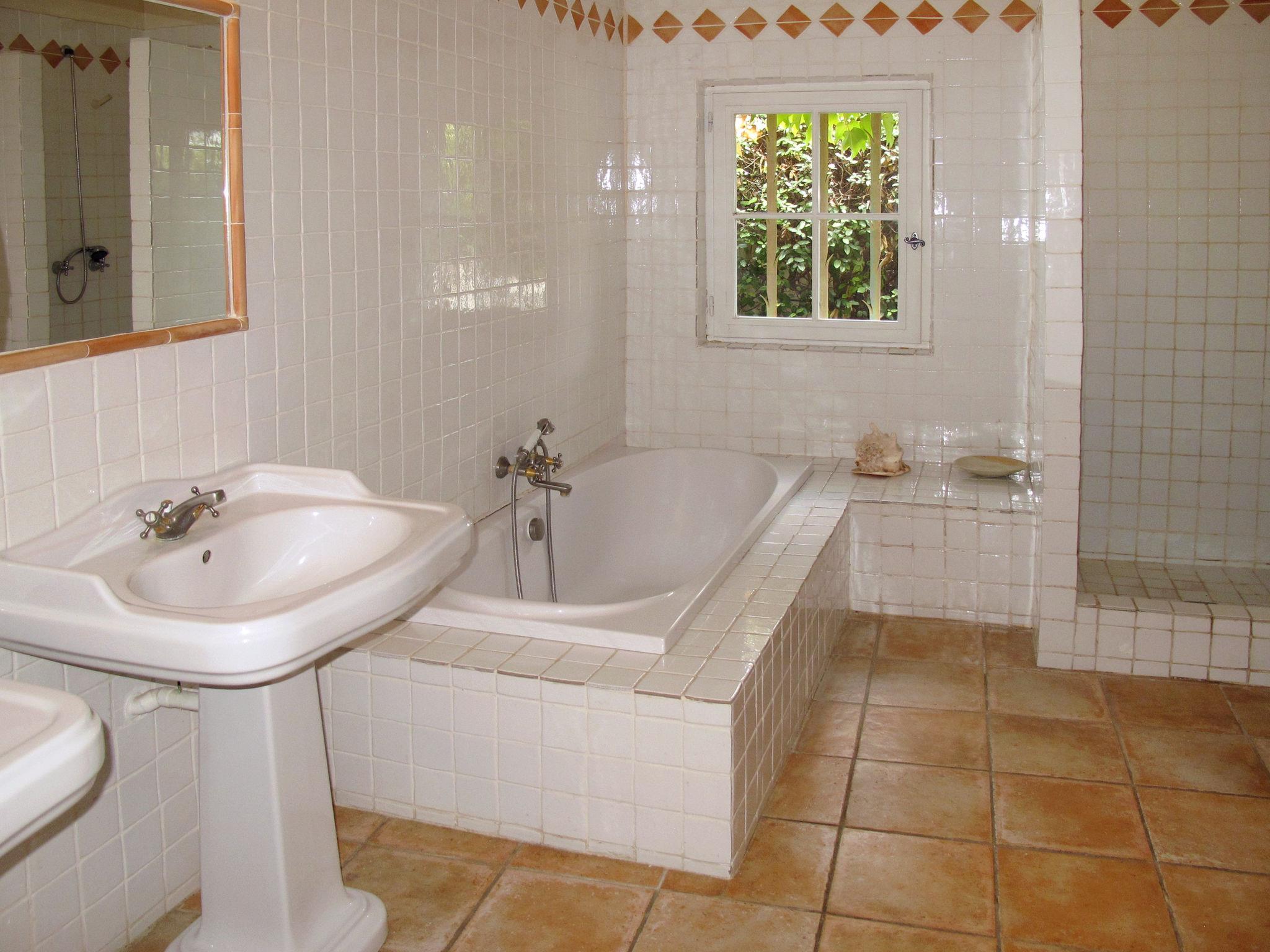 "Les Puits Neufs", 6-room cottage 200 m2 on 2 levels. Spacious, tasteful and cosy furnishings: living room with open-hearth fireplace (only for decoration), TV, radio and DVD. Exit to the terrace. Walk-through room with 1 french bed (1 x 140 cm, length 190 cm), bath/shower/WC and double hand-basin. 1 room with 2 beds (90 cm, length 190 cm). Exit to the terrace. Dining room with open-hearth fireplace (only for decoration), dining table. Open kitchen (oven, dishwasher, 4 gas rings, toaster, kettle, microwave, freezer, electric coffee machine) with dining table. Exit to the terrace. Upper floor: 1 room with 2 beds (80 cm, length 190 cm), bath/WC and double hand-basin. 1 room with 1 french bed (1 x 160 cm, length 200 cm). Shower/WC. Electric heating. Natural stone floors. Terrace 160 m2 partly roofed. Terrace furniture, barbecue (portable), deck chairs (4). Facilities: washing machine, iron, baby cot. Please note: maximum 1 pet/ dog allowed. Smoke alarm, fire extinguisher.