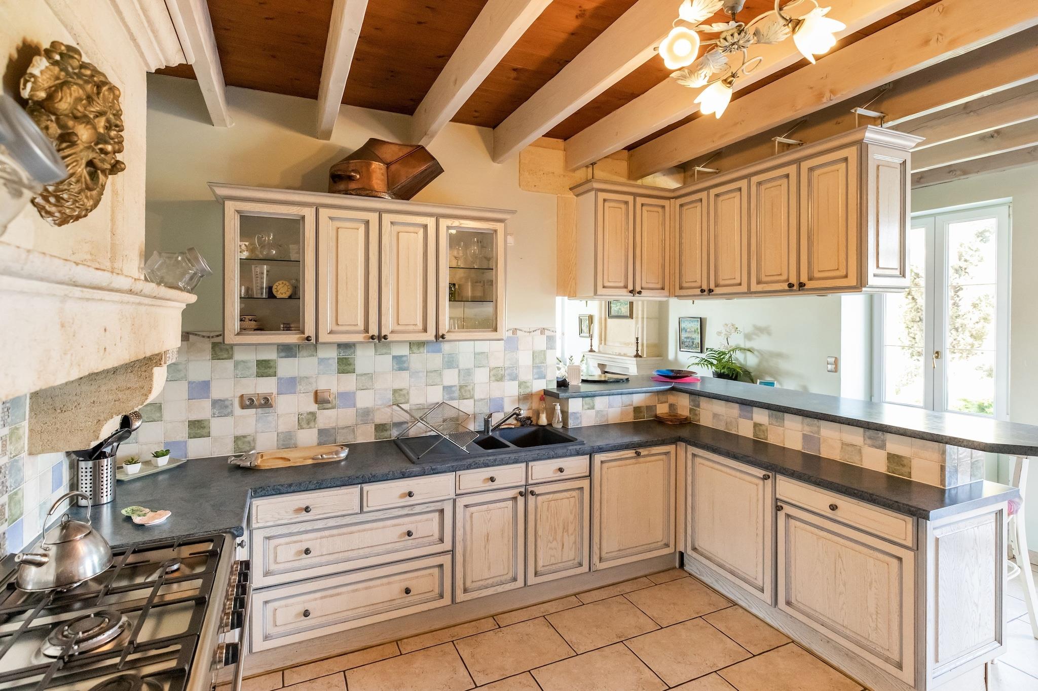Elegant Château Amid Bordeaux Vineyards Step into the timeless charm of this magnificent château, surrounded by lush vineyards in the heart of Bordeaux's wine country. Perfect for family getaways or group retreats, this historic property blends classic architecture with modern comforts. Wake up to sweeping vineyard views, enjoy the serene atmosphere, and create unforgettable memories in a truly French setting. Prime Location for Wine & Culture Lovers Located just 25 minutes from Bordeaux, 20 minutes from Blaye, and 30 minutes from the UNESCO-listed Saint-Émilion, this château offers the perfect base for exploring world-famous wineries and charming villages. Day trips to Arcachon Bay, the Dune du Pilat, or Royan's seaside are within easy reach. In Bordeaux, savor gourmet dining at atmospheric restaurants or stroll through its historic streets. Luxury Comforts & Relaxation After a day of exploring, unwind in the private hot tub or cool off in the sparkling pool. Gather for dinner in the grand dining room, share stories by the fireplace, or enjoy the sun in the tranquil courtyard. With five en-suite bedrooms, a fully equipped kitchen, a balcony, BBQ, and elegant lounge spaces, every corner of the château is designed for comfort and style. This peaceful, pet-free retreat ensures a restful, refined stay.