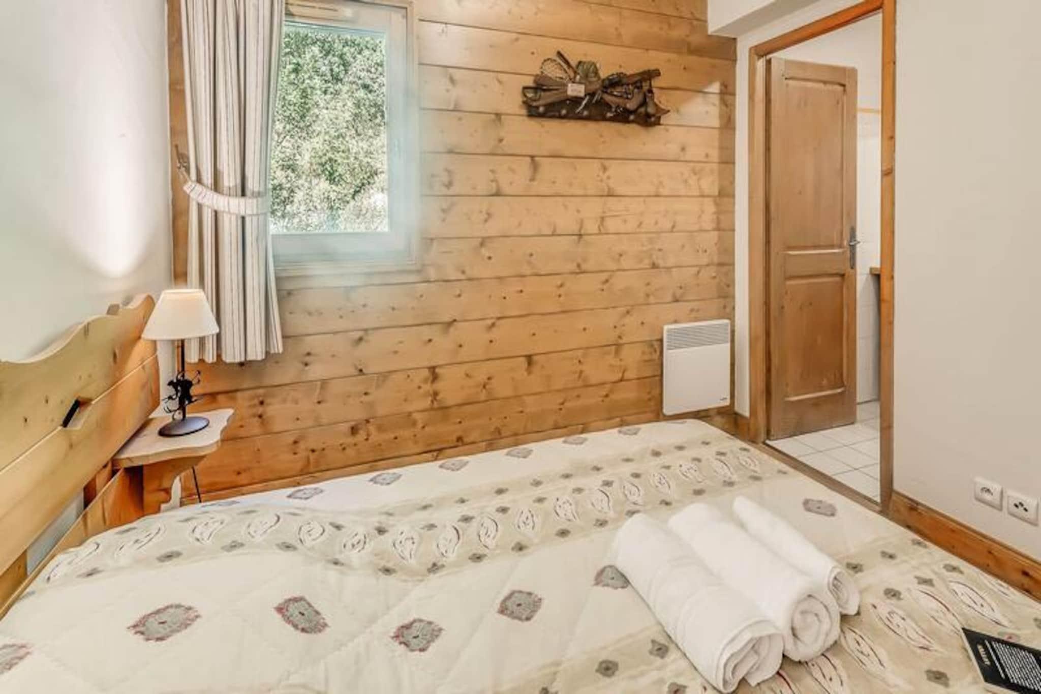 This cozy apartment offers a delightful escape in a serene mountain setting, accommodating up to six guests. The property includes a master suite with a double bed, an ensuite shower, and WC, alongside a bedroom with two single beds. A pull-out sofa in the living area offers additional sleeping space. The apartment features a sunny south-facing balcony with stunning views, free Wi-Fi, and a ski locker. For convenience, it includes bed linens, towels, and end-of-stay cleaning (excluding the kitchen). Pets are not allowed, and the property is non-smoking. Located at the entrance of the village, this apartment provides easy access to the slopes and village amenities. A free shuttle service (every 8 minutes in winter) connects you to the resort center and the gondola, situated approximately 1 kilometer away. Explore charming cafes and traditional markets in the village center or enjoy a peaceful stroll surrounded by nature. Additional nearby attractions include a gym, swimming pool (within the residence, 2 nights open until 10 p.m.), and a spa for ultimate relaxation. The apartment’s fully equipped kitchen includes a dishwasher, oven, microwave, refrigerator, and coffee maker, ensuring home-like convenience during your stay. A separate bathroom and WC provide added comfort, while an elevator connects the apartment to covered parking for effortless access. This retreat is perfect for a tranquil vacation or an adventure-filled getaway.