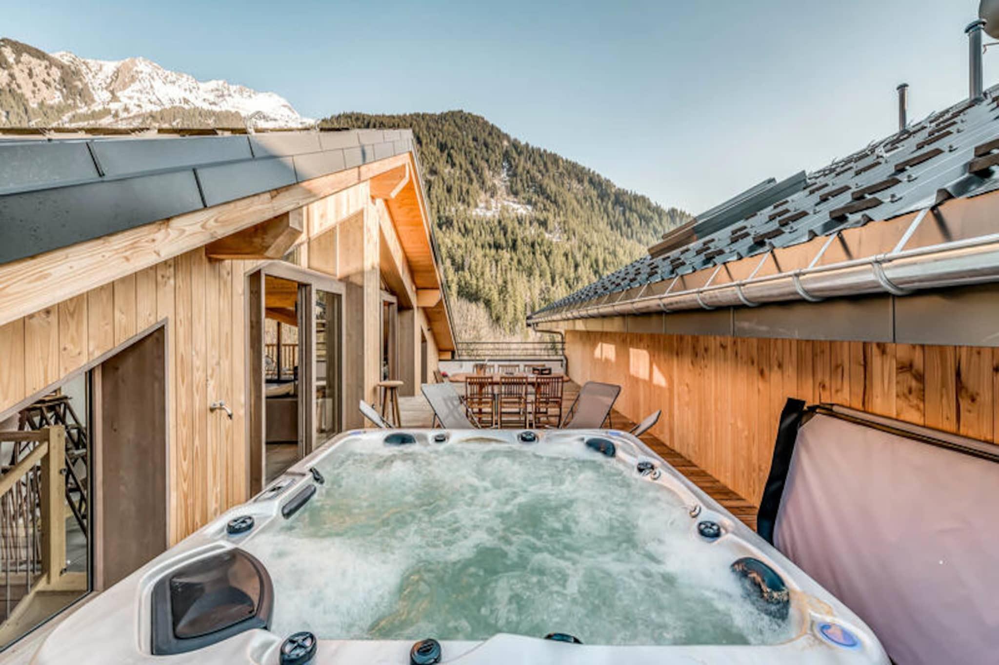 This luxurious duplex apartment, located in a modern and elegant chalet complex, offers spacious accommodation with 6 bedrooms and 5 bathrooms, making it perfect for large groups or families. The master suite features a double bed, a private bathroom with a bathtub, and access to a terrace. Other bedrooms offer flexible bedding arrangements, with single beds that can be combined into doubles. The apartment is non-smoking and not pet-friendly, ensuring a comfortable and allergy-friendly environment for all guests. Conveniently located just 50 meters from the free municipal shuttle stop, guests can easily access the ski lifts in winter and enjoy the nearby pool and spa in summer. The village of Champagny in Vanoise and the hamlet of Villard Dessous are within walking distance, offering access to local shops, cafes, and essential services. The breathtaking views of the Vanoise mountains add to the charm, making this a perfect retreat for nature lovers and adventure seekers. The fully equipped kitchen features modern appliances, including an induction hob, oven, microwave, and dishwasher, along with a central island. The 66m² living and dining area includes an ethanol fireplace, flat-screen TV, and comfortable seating, creating a cozy ambiance. The apartment also boasts multiple balconies and a large terrace with a jacuzzi, offering a relaxing outdoor space to enjoy the stunning surroundings.