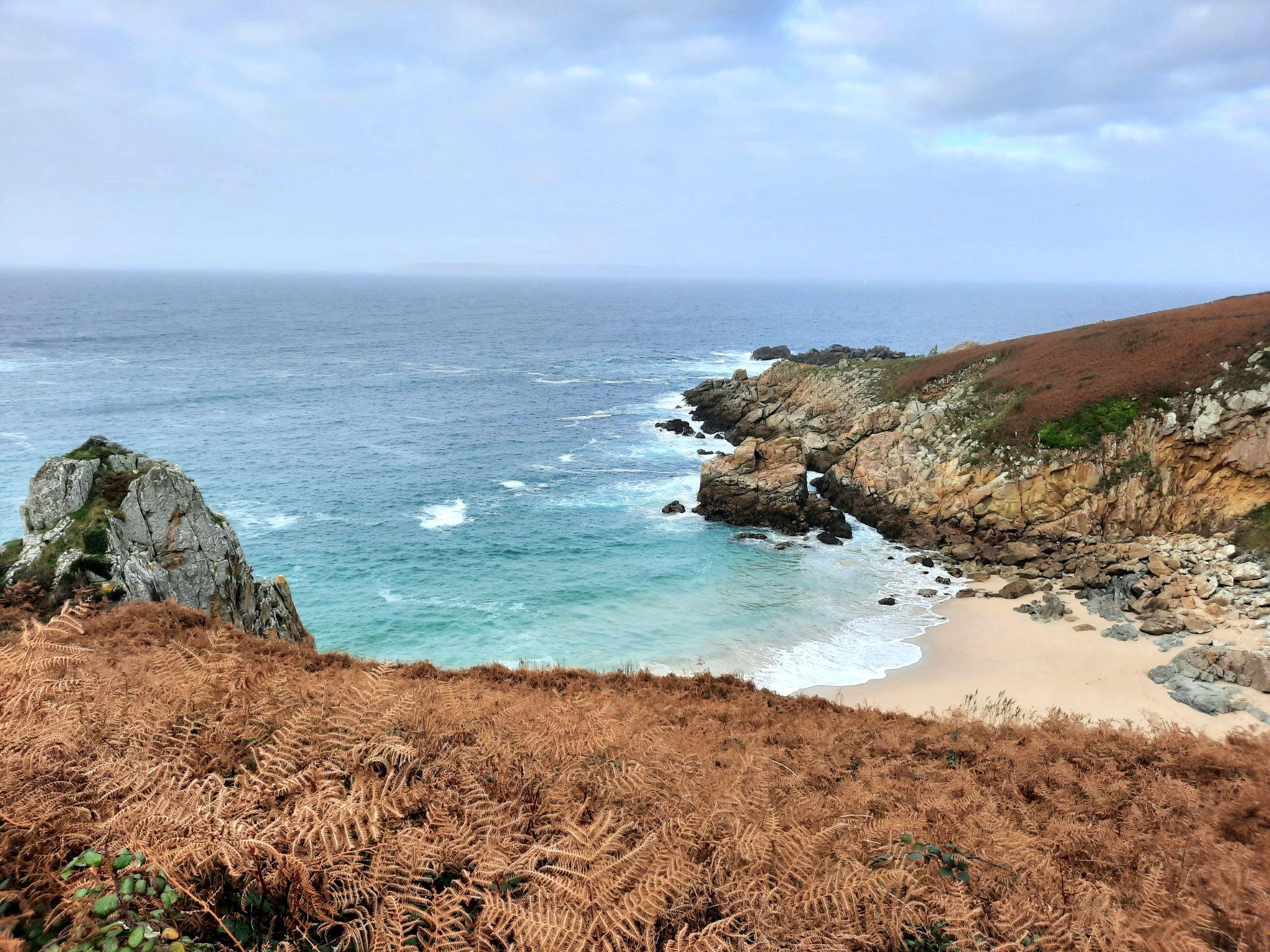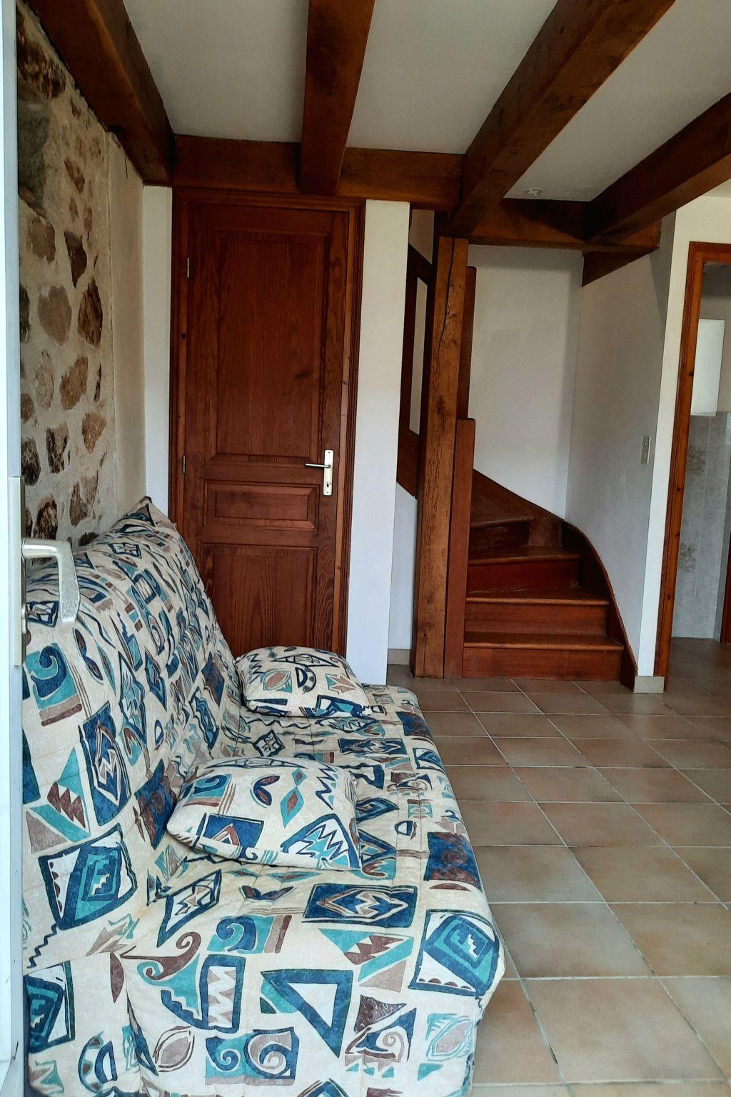 The gîte is located in the commune of Cléden-Cap-Sizun, close to the Pointe du Raz, Pointe du Van, Baie des Trépassées and the GR34 coastal footpaths. Semi-detached gîte of 50 m2 in an old farmhouse, renovated in 1992, adjoining dwellings, not inhabited.Very quiet village.The accommodation comprises a living room with fitted kitchen area, oven, dishwasher, microwave. Washing machine in adjoining room, shared with the other gîte. On the first floor, 1 bedroom with 1 double bed, 1 bathroom with bath, on the second floor, a bedroom with 2 single beds. Electric heating in all rooms. Outside, garden furniture, barbecue, swing shared with the other gîte.
