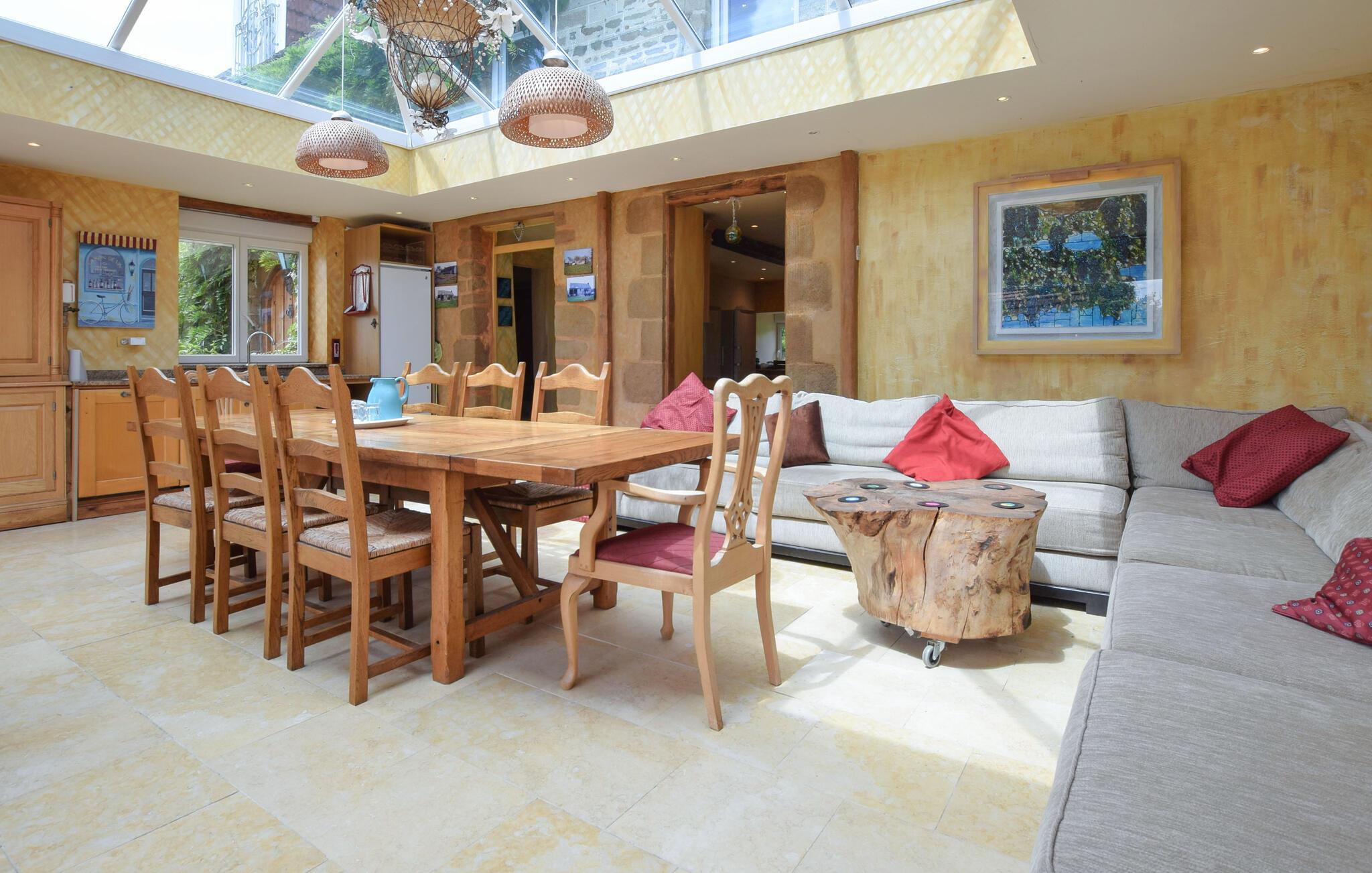 Willkommen in diesem einladenden Ferienhaus mit Geschichte, wo Sie umgeben von der herrlichen Landschaft der Normandie entspannen. Viele besondere Details machen das Haus zum idealen Aufenthaltsort. Genießen Sie den Lichteinfall durch das Pyramidenglasdach und die schöne Aussicht. Machen Sie es sich nach einem guten Essen abends auf dem Sofa bequem und plaudern Sie noch lange am Kaminofen.
