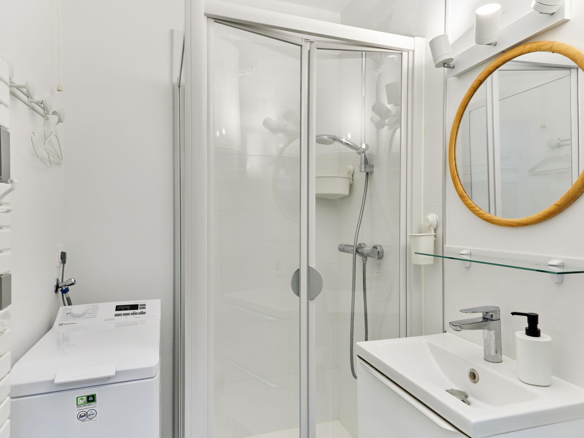 "Le Patio", 1-room studio 25 m2. Comfortable and beautiful furnishings: living/sleeping room with 1 french bed (140 cm, length 190 cm). Kitchenette (oven, dishwasher, 2 induction hot plates, toaster, kettle, microwave, electric coffee machine) with TV (flat screen). Shower/WC. Electric heating. Covered balcony. Facilities: washing machine. Internet (WiFi, free). Please note: non-smokers only. Smoke alarm. Offer by a private individual according to Art. 155, IV of CGI.