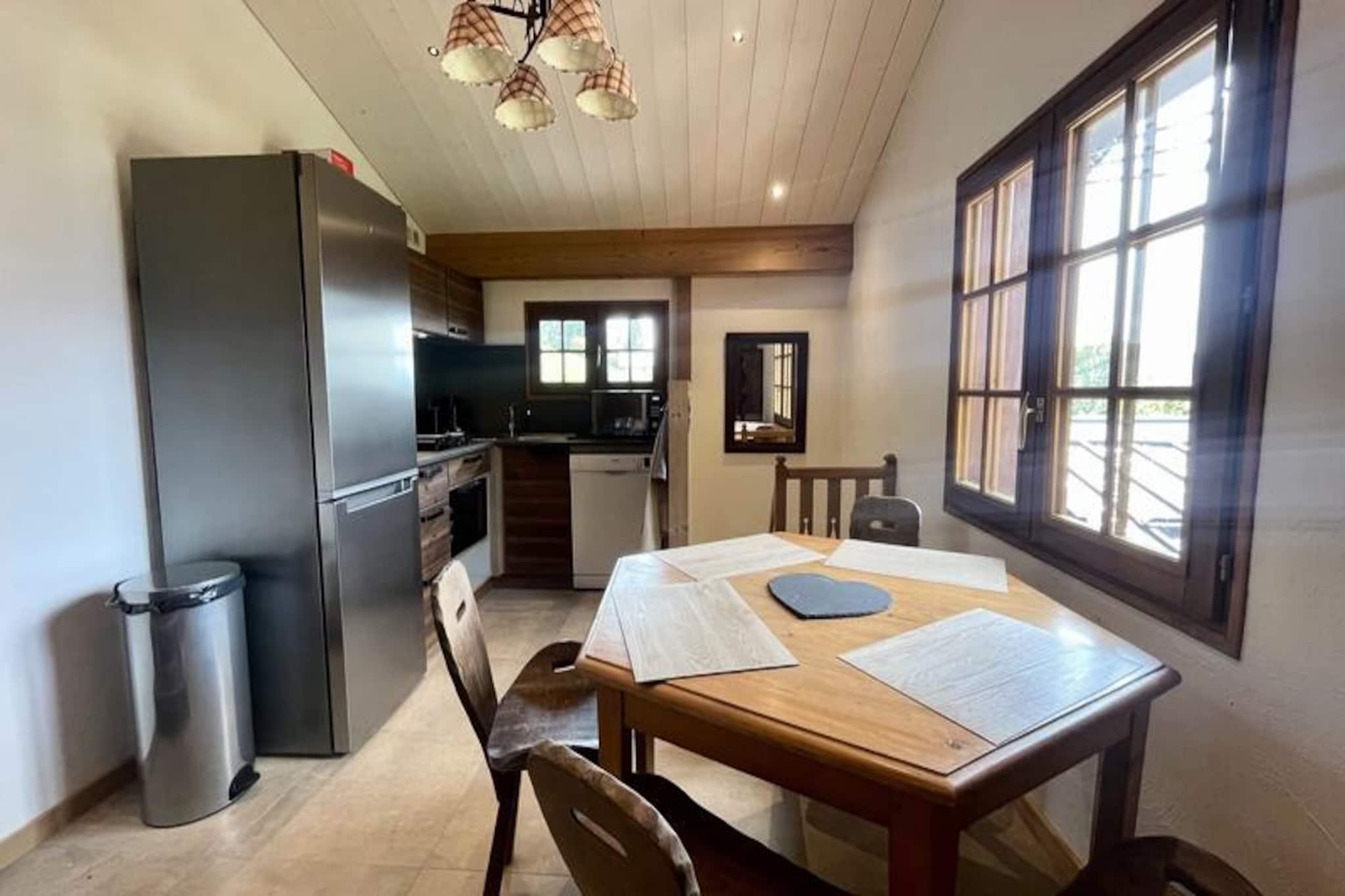 At the crossroads of alpine charm and modern comfort, this semi-detached chalet complex offers an unforgettable retreat in the heart of the Espace Diamant ski area. Situated between Crest-Voland and Le Cernix, just 600 meters from the slopes and ski school, the chalet invites you to immerse yourself in the beauty of the French Alps. With breathtaking views of Mont Charvin from its west-facing terraces, every moment here feels like a postcard come to life. Whether you're seeking thrilling ski adventures or tranquil summer hikes, this location promises a perfect balance of activity and relaxation. \n\nThe chalet, fully renovated in 2022, is thoughtfully designed for 2 to 4 guests, offering approximately 35m² of living space across three floors. High-quality amenities ensure a comfortable stay, including a laundry room with washer/dryer, a bathroom with a walk-in shower, and two terraces ideal for soaking in the alpine scenery. Please note, the narrow spiral staircase connecting the floors may not be suitable for young children or guests with reduced mobility. Every detail of the chalet reflects a commitment to authenticity and convenience, making it a cozy haven for couples or small groups. \n\nBeyond the chalet, the village of Crest-Voland enchants visitors with its friendly atmosphere, local shops, and dining options. In winter, explore 192 km of interconnected slopes spanning six charming resorts, while summer unveils a playground of trails, mountain bike routes, and panoramic views accessible via the Logère chairlift. Nearby attractions like Flumet lake, Megève, Annecy, and Chamonix add variety to your alpine escape, offering everything from leisure activities to world-class dining experiences. \n\nWhether you're drawn to the thrill of skiing or the serenity of mountain landscapes, this chalet is your gateway to the best of the French Alps. Let the charm of Crest-Voland and the surrounding Val d'Arly region create memories that will last a lifetime.