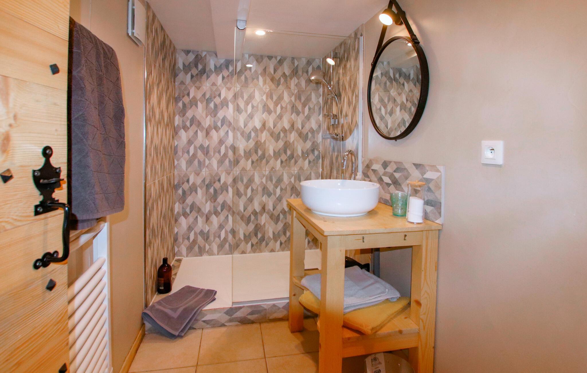 Willkommen im liebevoll restaurierten Innenbereich Ihres Ferienhauses aus dem 19. Jahrhundert, das Ihnen eine ruhige Auszeit im wunderschönen französischen Alpenvorland bietet. Nutzen Sie die moderne, offene Küche, um Ihre Lieblingsgerichte zuzubereiten, und verbringen Sie gesellige Abende am Esstisch oder entspannte Stunden mit einem guten Buch auf der bequemen Couch.