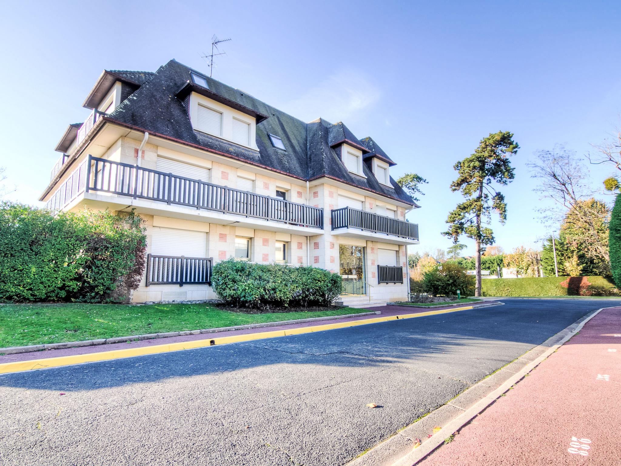 Deauville: Residence "Marie Antoinette". 450 m from the sea, 450 m from the beach. In the complex: lift. (4 steps). Shop 600 m, grocery, supermarket 350 m, restaurant 600 m, bus stop "Carrefour Tourgéville" 450 m, railway station "Deauville-Trouville" 1.7 km, indoor swimming pool 1 km, thermal baths "Deauville" 1 km. Golf course (18 hole) 3.2 km, tennis 1.3 km, riding stable 1.3 km. Nearby attractions: Centre International Deauville - CID 1.2 km, Hippodrome de Clairefontaine 1.5 km, Mémorial de Caen 51 km, Plage du débarquement d'Arromanches 77 km. The keys‘ handover takes place by the agency Interhome in Deauville.