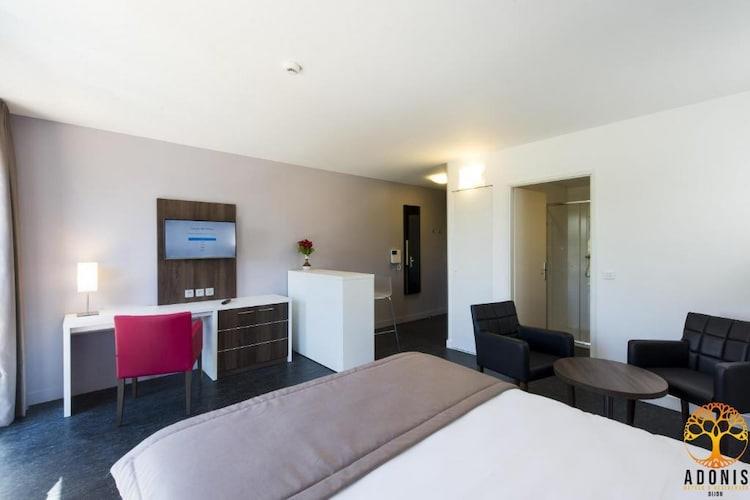 Adonis Dijon Maison Internationale welcomes you year-round for short or long stays, perfectly situated in the heart of the Bourgogne University Campus in Dijon, just 3 km from the Dijon Exhibition and Convention Center. Free public parking is conveniently located near the hotel. This establishment offers comfortable and fully equipped accommodations for your stay, each including a kitchenette, a private bathroom, comfortable bedding, and linens. Guests can enjoy free Wifi, a flat-screen TV, and access to a conference room, office space, terrace, and breakfast room. Adonis Dijon residence boasts a unique and accessible location. It's barely a hundred meters from the city center of Dijon and close to public transport, with the Porte Neuve train station just 2 km away. The Bourgogne Airport is located 8 km away (a 15-minute drive). For events, the Exhibition Center is 3 km from the residence, and the Zenith Showroom is 6 km away. Getting Here: By Plane/Public Transport: From Bourgogne Airport (9km), take a taxi or bus to Dijon Ville SNCF train station. Then, take the T1 tram towards Quétigny and alight at the "ERASME" stop. Continue alongside the tracks in the same direction for about 200m, then take the path on the left. By Train: Dijon Ville SNCF train station is approximately 3.5 km from the hotel, accessible via public transport. By Road: Follow the highway to Rue Sully/D107 in Dijon, then take the D107 exit from N274. Continue on Rue Sully/D107 and drive to Avenue Alain Savary.