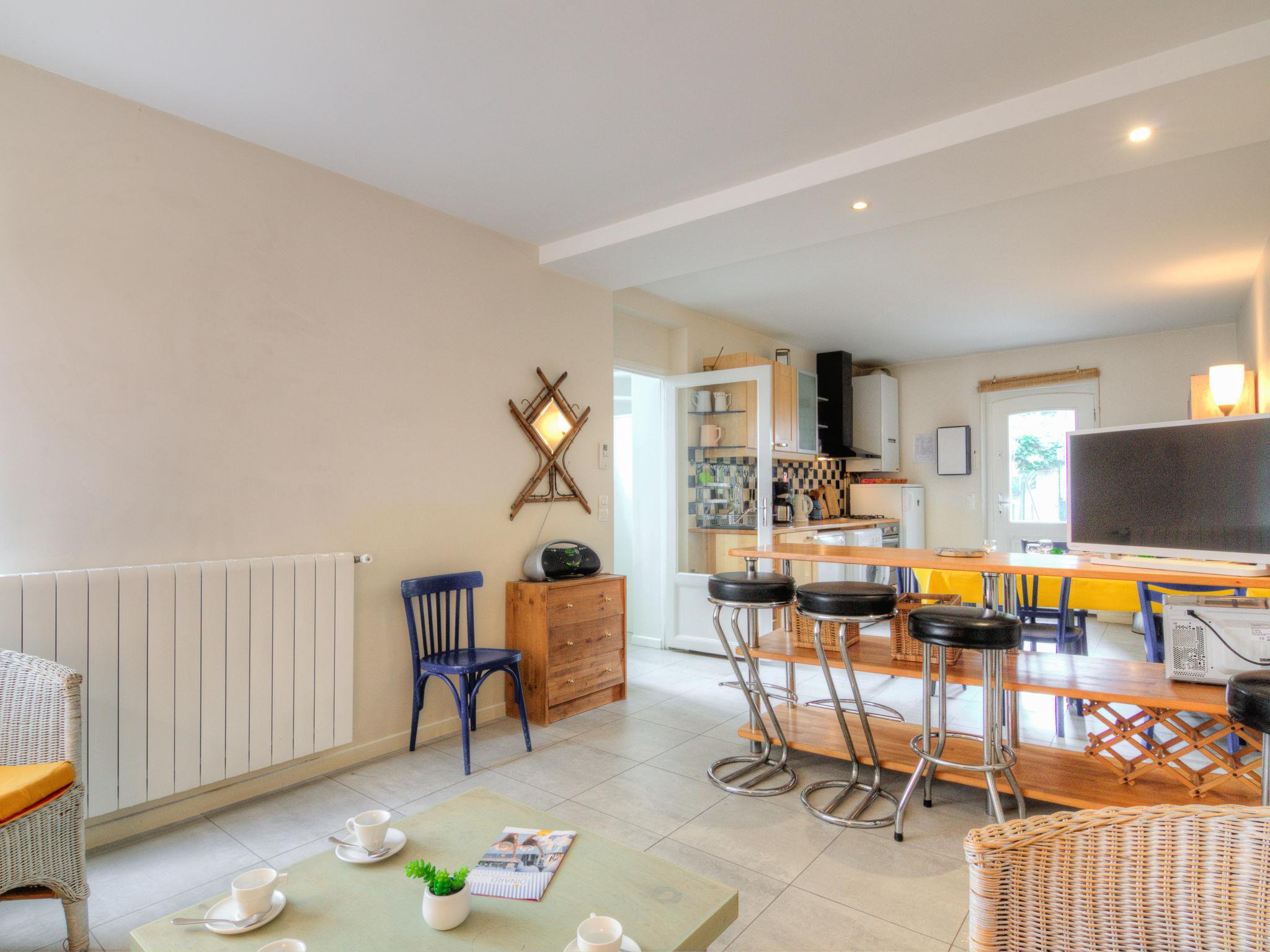 3-room terraced house 60 m2 on 2 levels. Living/dining room with TV (flat screen). Exit to the terrace. Open kitchen (4 hot plates, oven, dishwasher, toaster, kettle, microwave). Shower/WC. Upper floor: 1 room with 1 french bed (1 x 140 cm, length 190 cm). 1 room with 1 bed and 1 pull-out bed (2 pers.). Shower/WC. Gas heating. Facilities: washing machine, children's high chair, baby cot for up to 2 year olds. Internet (WiFi, free). Please note: non-smokers only, non-smoking house. Maximum 1 small pet/ dog allowed. Smoke alarm. FR54307