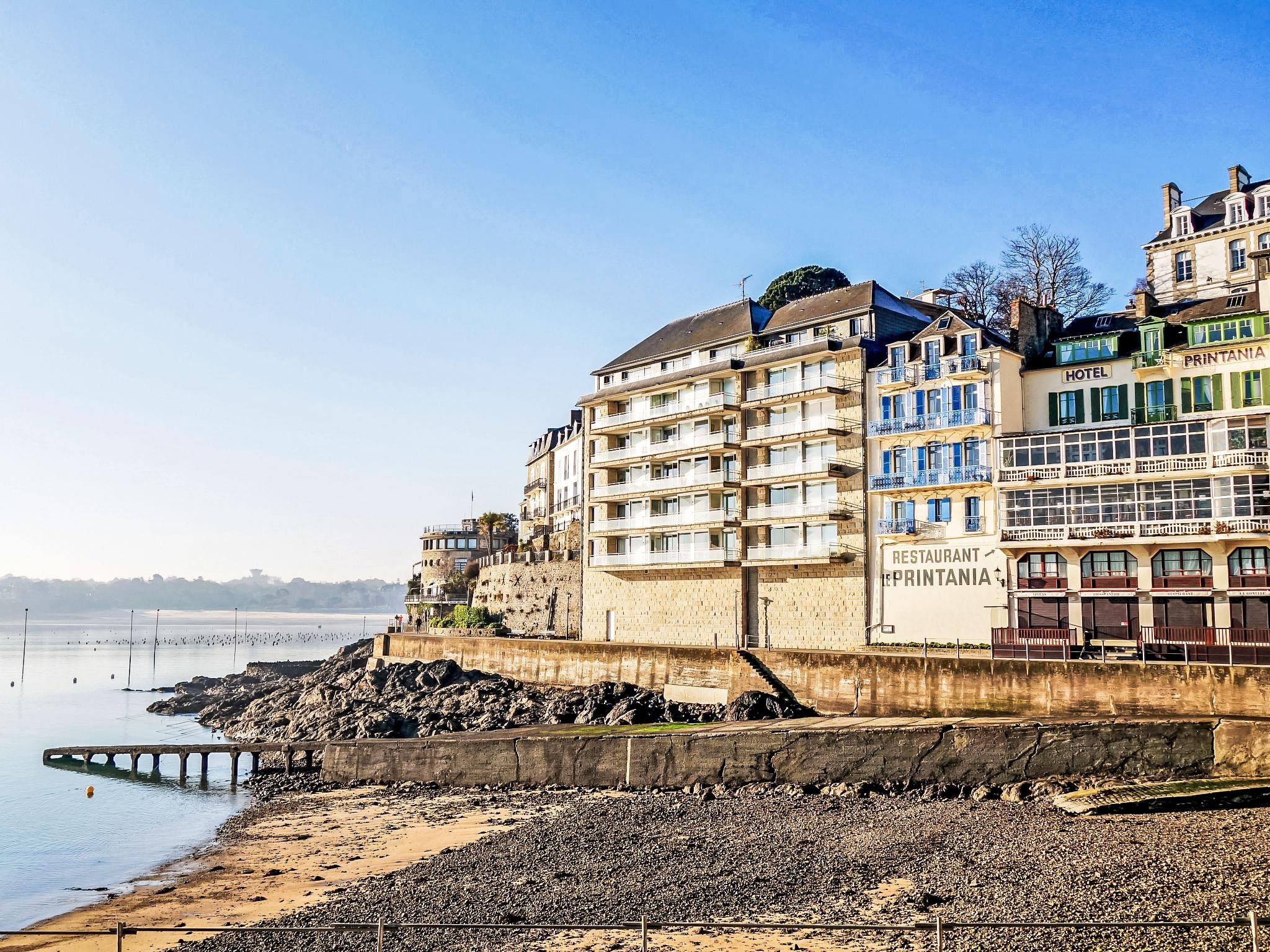 Small residence "Le Bellevue", 3 storeys, built in 1979. In the district of Bec de la Vallée, in the centre of Dinard, in the residential district, 30 m from the sea. In the complex: lift. Public parking on the road. Shop, grocery 500 m, supermarket 800 m, shopping centre 4 km, restaurant 400 m, bakery 500 m, pedestrian zone 20 m, bus stop "Office du Tourisme" 650 m, railway station "Gare SNCF de Saint Malo" 11 km, sandy beach "Plage de l'écluse" 800 m, outdoor swimming pool 400 m, indoor swimming pool 500 m, thermal baths "Thalasso Dinard" 2.5 km. Sports harbour 950 m, golf course (18 hole) 7 km, sailing school 50 m, tennis 1.5 km, riding stable 1.5 km. Nearby attractions: Saint Malo et ses remparts 12 km, Cancale et ses huîtres 22 km, Zoo de la Bourbansais 37 km, Dinan 23 km, Cap Fréhel et Fort La Latte 34 km, Le Mont Saint Michel 57 km. Please note: the keys‘ handover takes place by the agency Interhome in Dinard, 1 km. Additional accommodations can be booked.