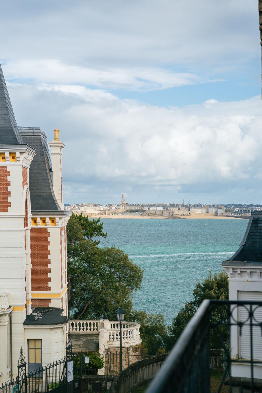 Historical villa "Villa Velox", built in 1895. In the district of La Malouine, 100 m from the sea, 100 m from the beach. Shop, grocery, restaurant 900 m, bus stop "Sport Bretagne" 600 m, sandy beach "Plage de Port Salut" 100 m. Sports harbour 1 km, golf course (18 hole) 7 km, riding stable 3 km, walking paths from the house 100 m. Nearby attractions: Saint Malo 12 km, Le Grand Aquarium de Saint Malo 9.5 km, Dinan 24 km, Le Cap Fréhel/le Fort La Latte 39 km, Cancale 23 km, Le Mont Saint Michel 58 km. Hiking paths: GR32 100 m. Please note: no lift. The keys‘ handover takes place by the agency Interhome in Dinard, 1 km.