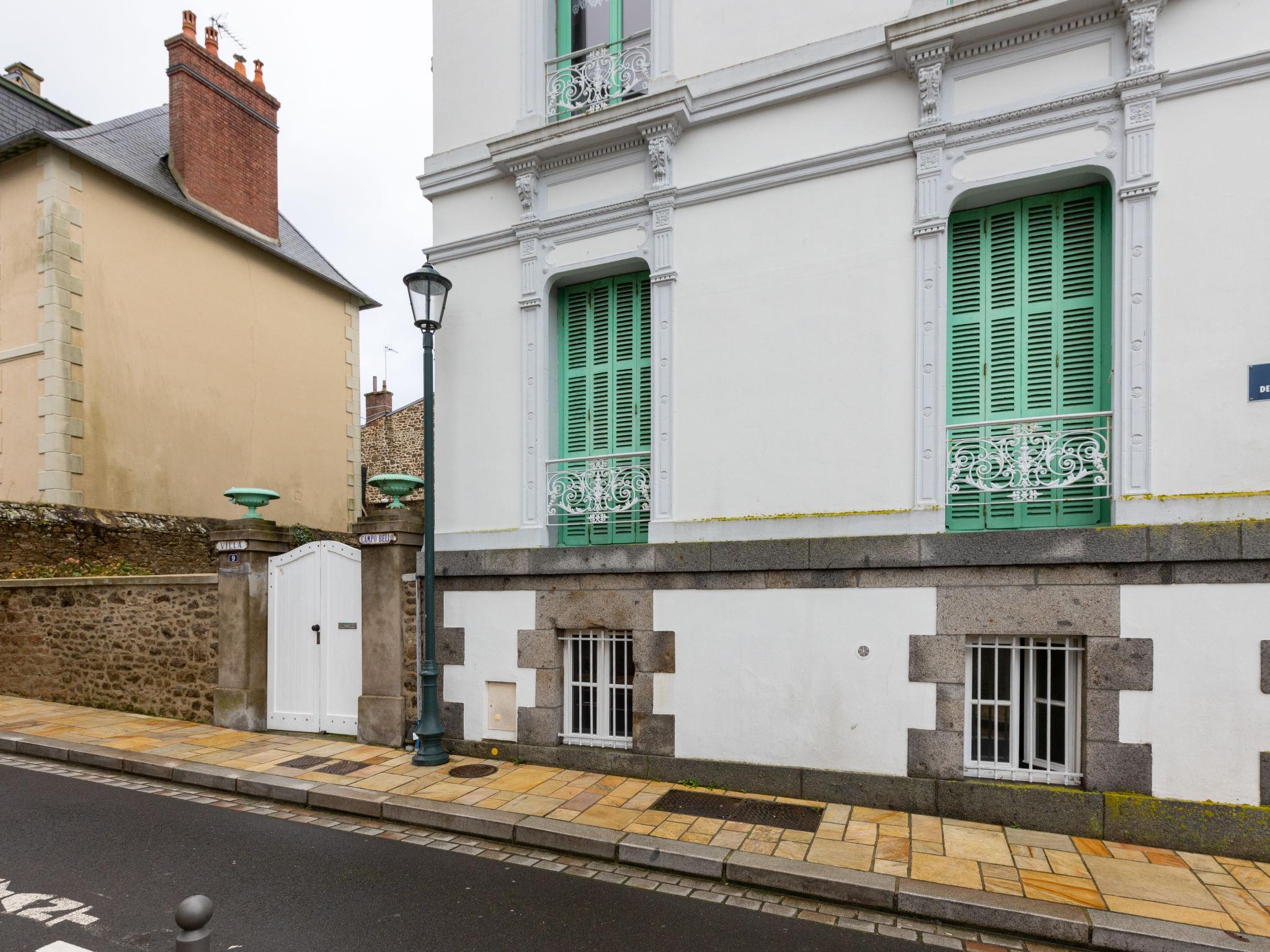 Residence "Villa Campo Bello", 3 storeys. In the centre of Dinard, 200 m from the sea, 200 m from the beach. Public parking on the road. Shop 20 m, grocery 100 m, supermarket 300 m, shopping centre 7.5 km, restaurant 30 m, bar 50 m, bakery 100 m, café 100 m, bicycle rental 150 m, bus stop "Le Gallic" 30 m, railway station "SNCF Saint-Malo" 11 km, ferry "Gare Maritime du Naye St Malo" 11.3 km, sandy beach "L'Ecluse" 100 m, park "Port Breton" 1.4 km, outdoor swimming pool 200 m, indoor swimming pool 100 m, thermal baths "Thalasso de Dinard" 2.5 km. Sports harbour 600 m, golf course (18 hole) 7 km, sailing school 500 m, tennis 1.8 km, minigolf 1.5 km, riding stable 1.8 km, sports centre 1.7 km, walking paths from the house 100 m. Nearby attractions: Saint Malo 12.6 km, Grand Aquarium de Saint Malo 9 km, Saint Briac sur mer 8.3 km, Dinan 23.5 km, Fort La Latte Cap Fréhel 36.2 km, Le Mont Saint Michel 59.6 km. Please note: no lift. The keys‘ handover takes place by the agency Interhome in Dinard.